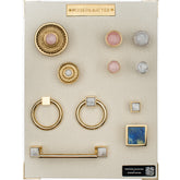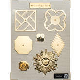 A life-size paper punch-out of our best selling designs. Customers can easily place on furniture to see scale, finish, and gemstone options before committing to their purchase. Available in packs of 50.