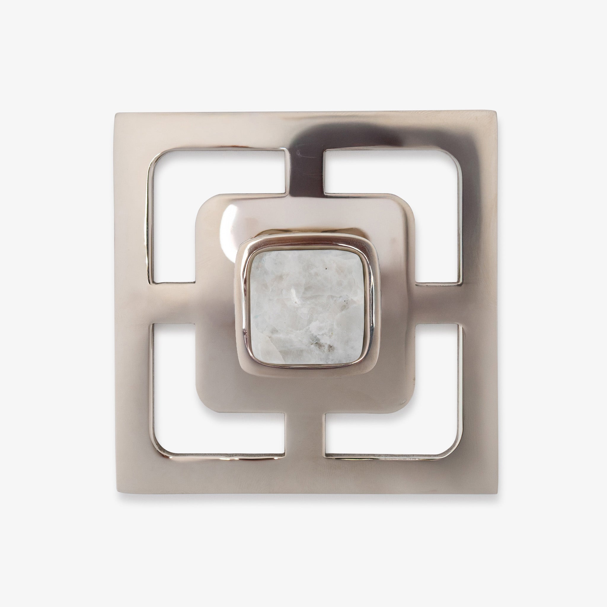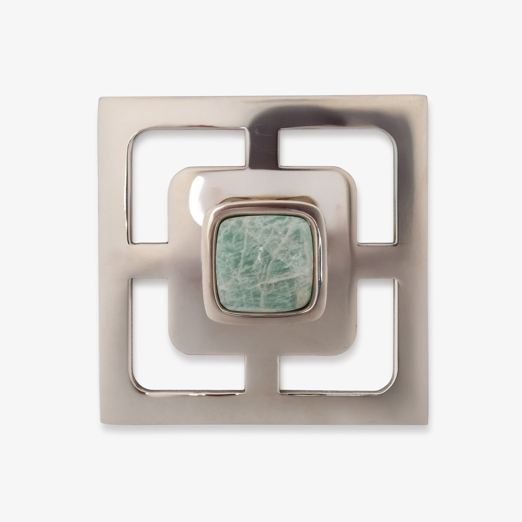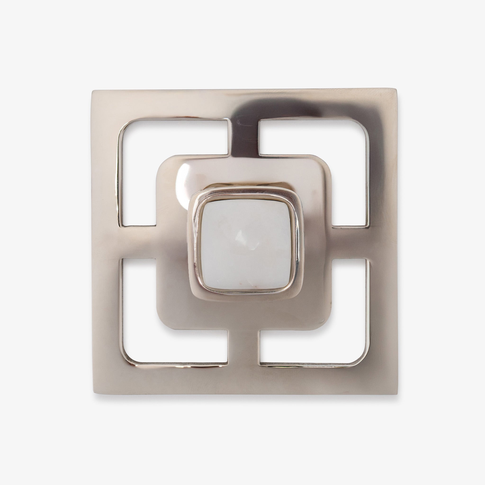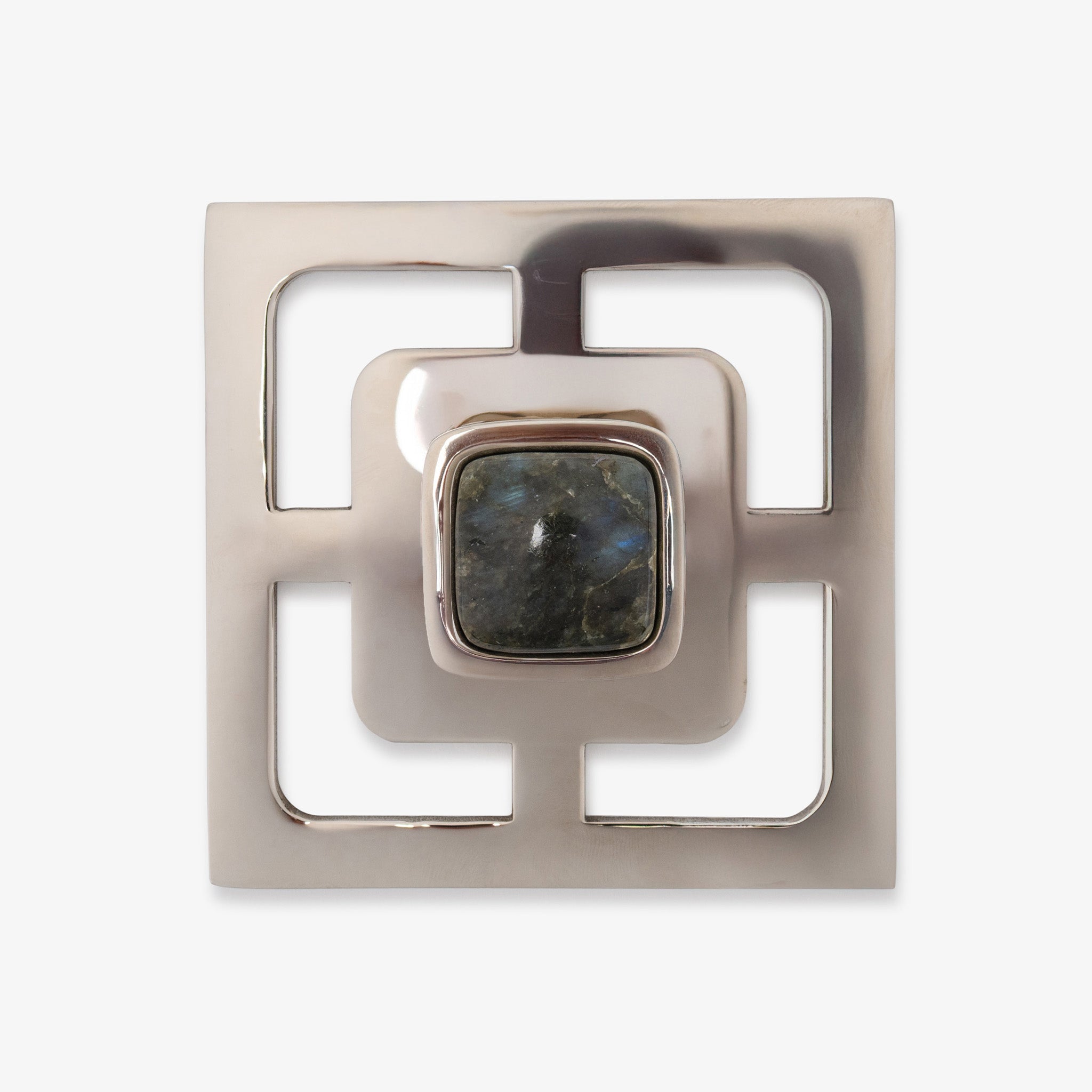 Elevate your interior with architectural elegance. This distinctive hardware combines ornamental fretwork detailing with a captivating gemstone centerpiece, creating an eye-catching focal point on cabinetry and drawers. Customize your finish and gemstone selection to perfectly align with your design vision and personal style preferences.