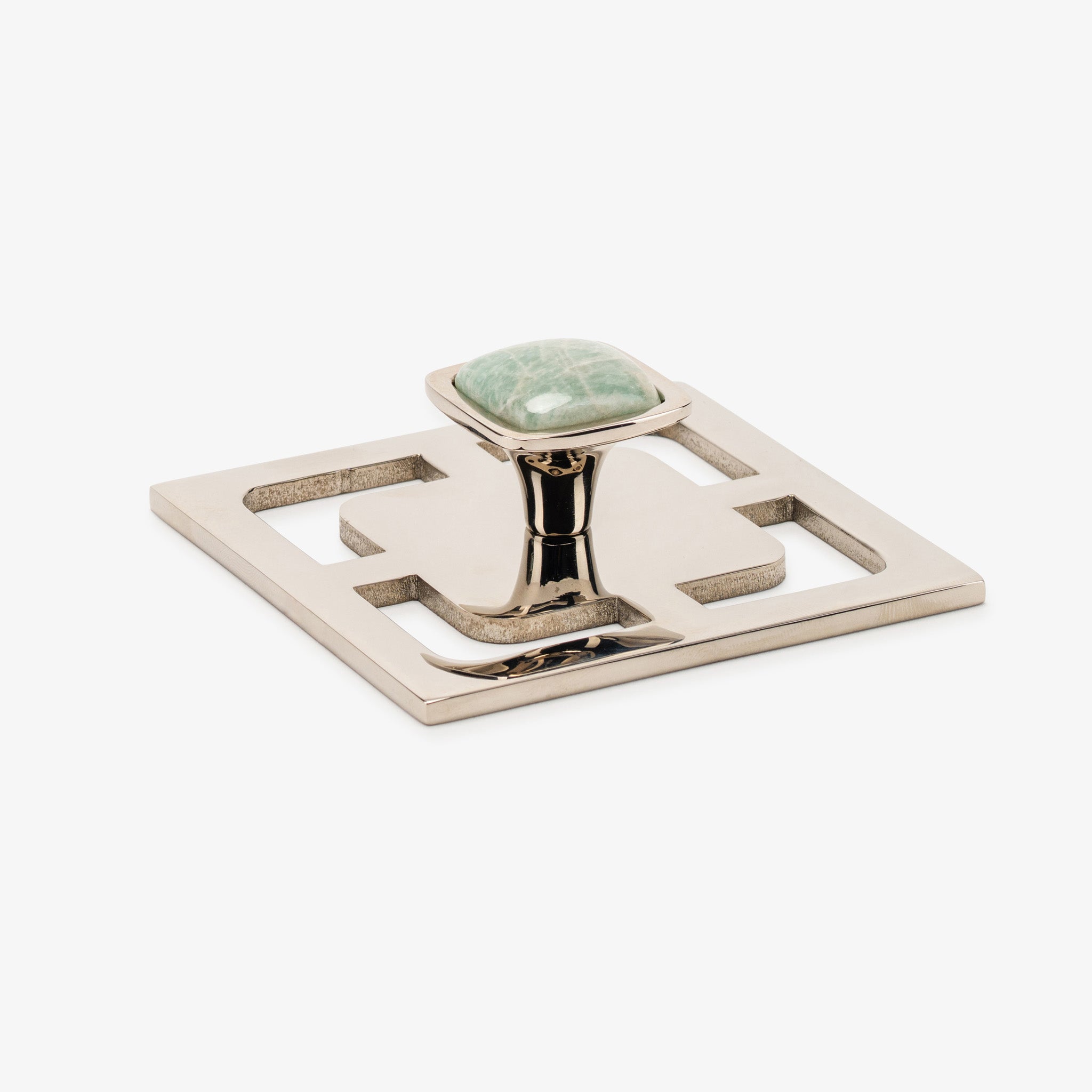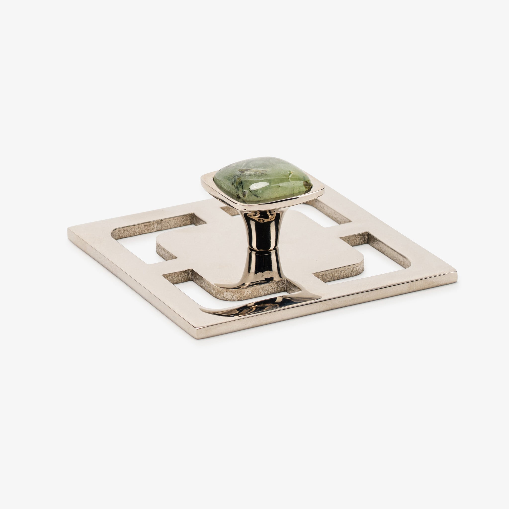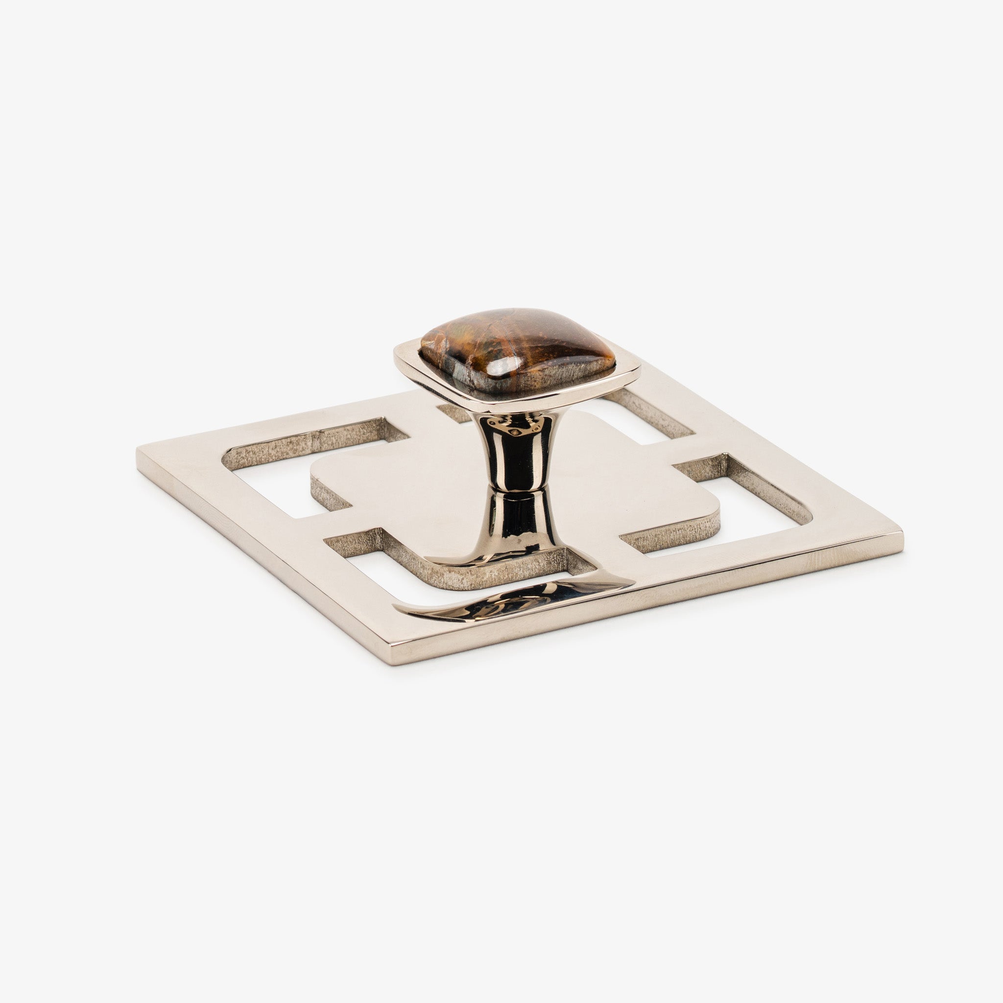 Elevate your interior with architectural elegance. This distinctive hardware combines ornamental fretwork detailing with a captivating gemstone centerpiece, creating an eye-catching focal point on cabinetry and drawers. Customize your finish and gemstone selection to perfectly align with your design vision and personal style preferences.