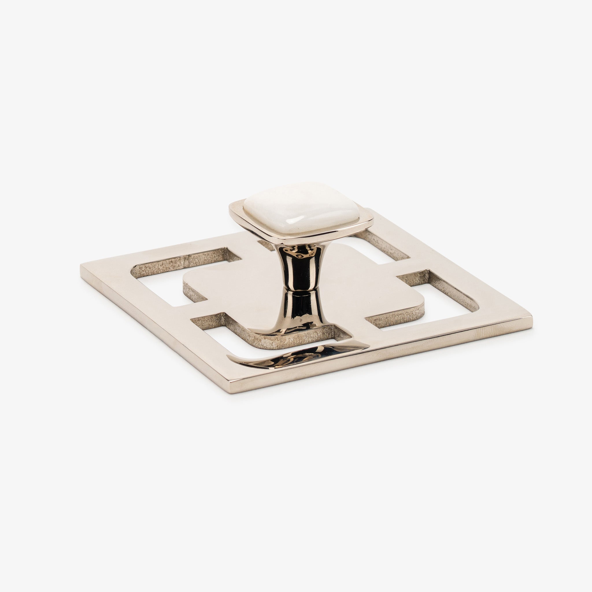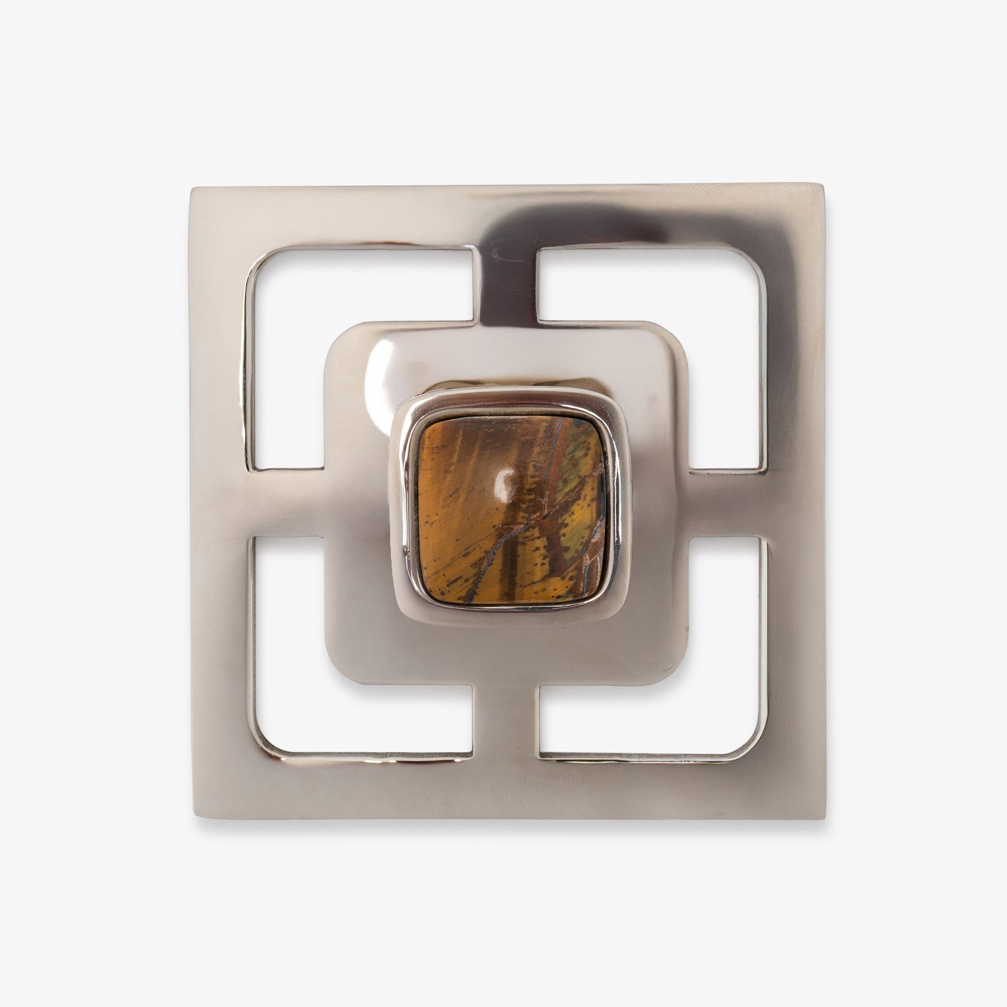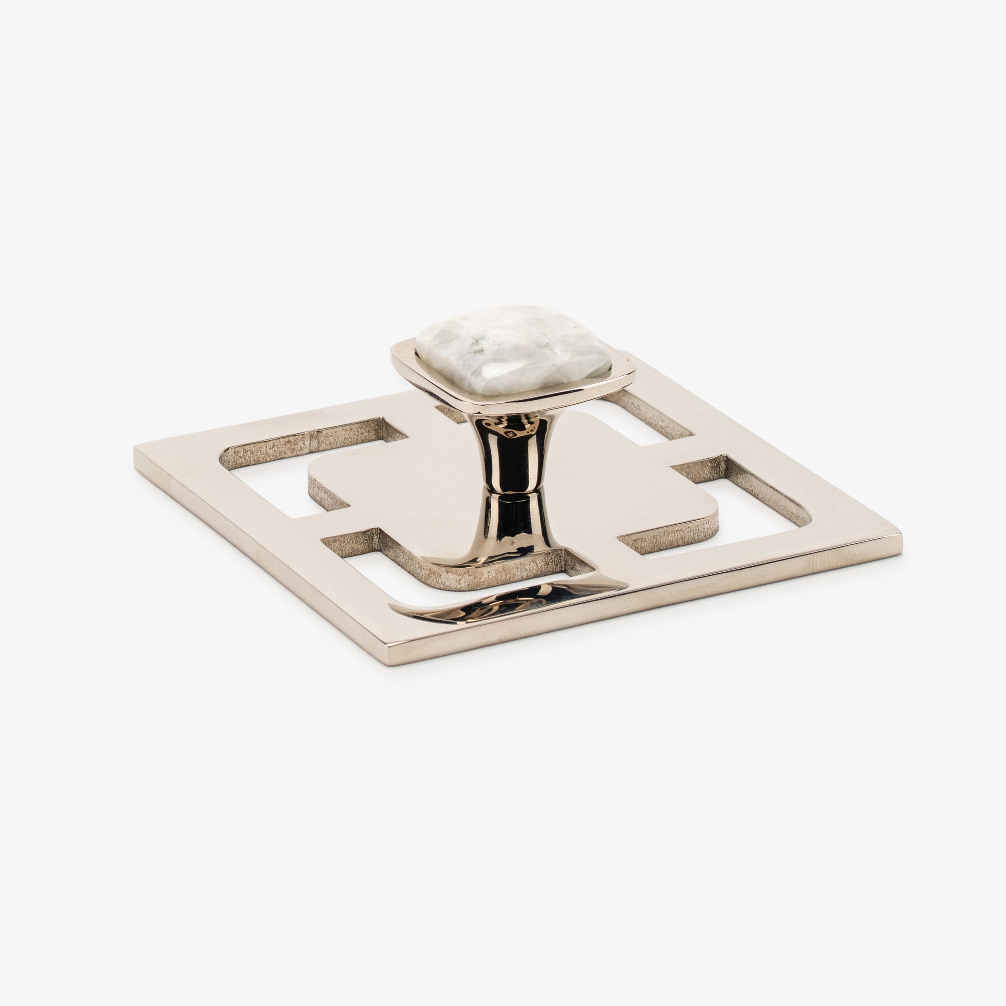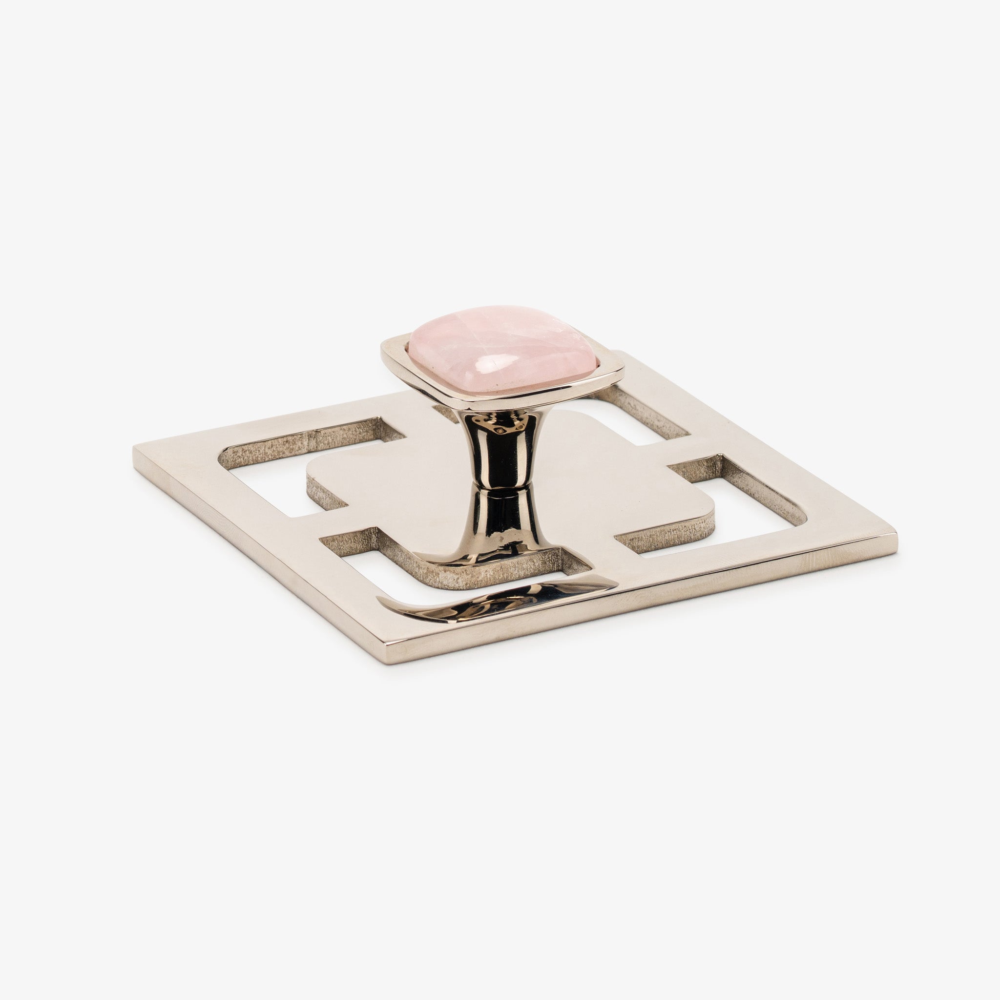 Elevate your interior with architectural elegance. This distinctive hardware combines ornamental fretwork detailing with a captivating gemstone centerpiece, creating an eye-catching focal point on cabinetry and drawers. Customize your finish and gemstone selection to perfectly align with your design vision and personal style preferences.