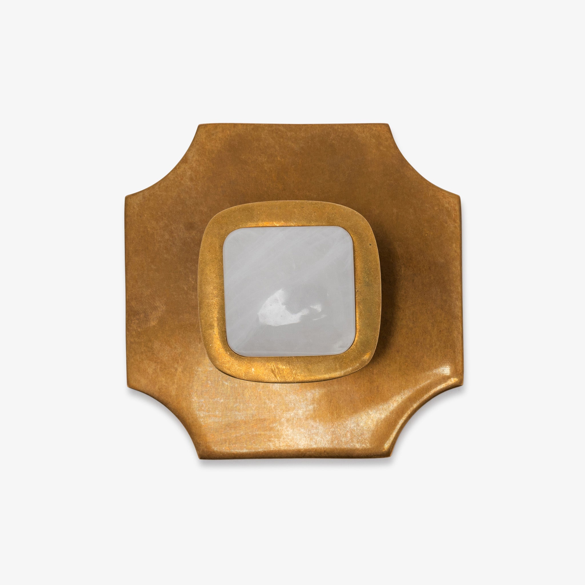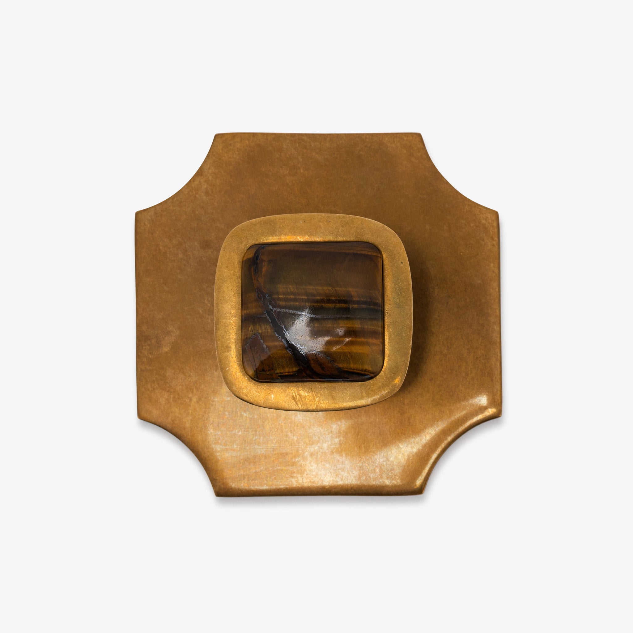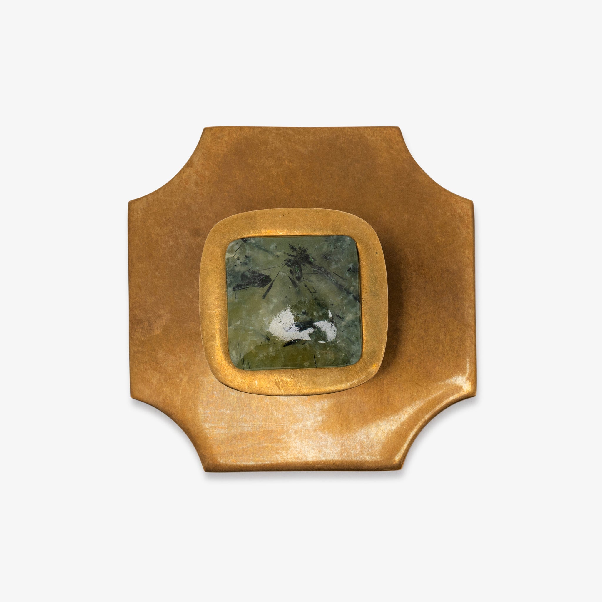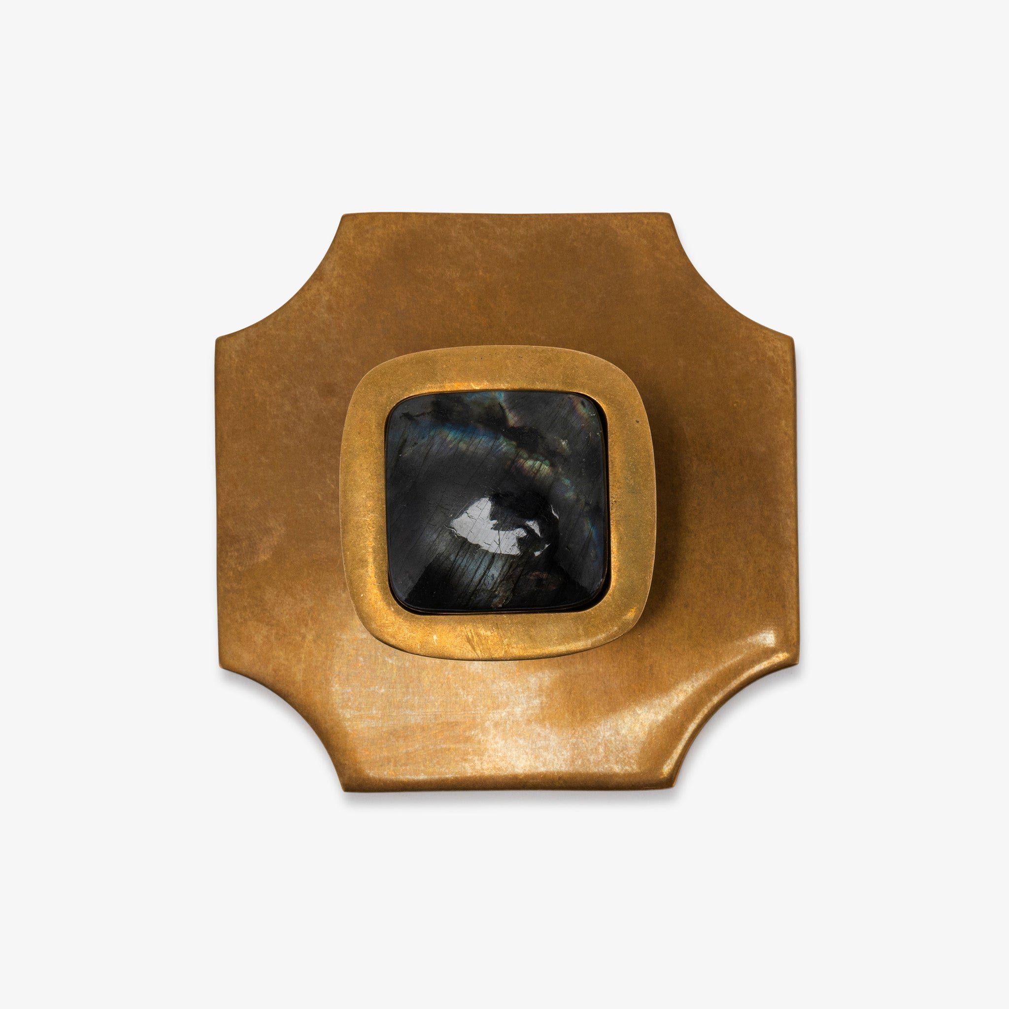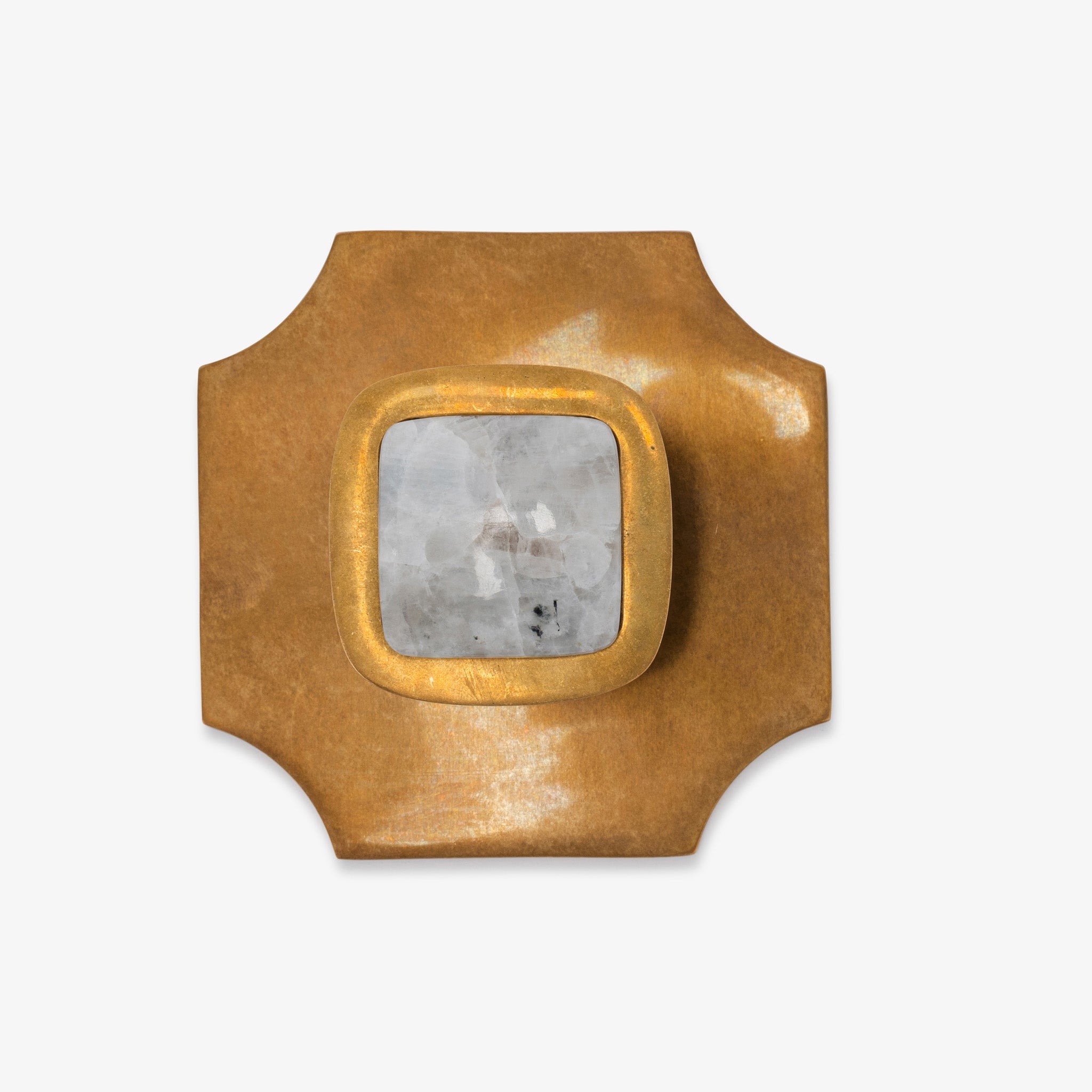 Transform your interiors with this pairing of the Bossard backplate and our beloved Benson knob, showcasing luxurious gemstone options. This Modern Matter essential combines refined craftsmanship with bold design, turning everyday hardware into an architectural statement. Whether updating kitchen cabinetry or bedroom furnishings, this polished brass fixture delivers the contemporary sophistication your home deserves.