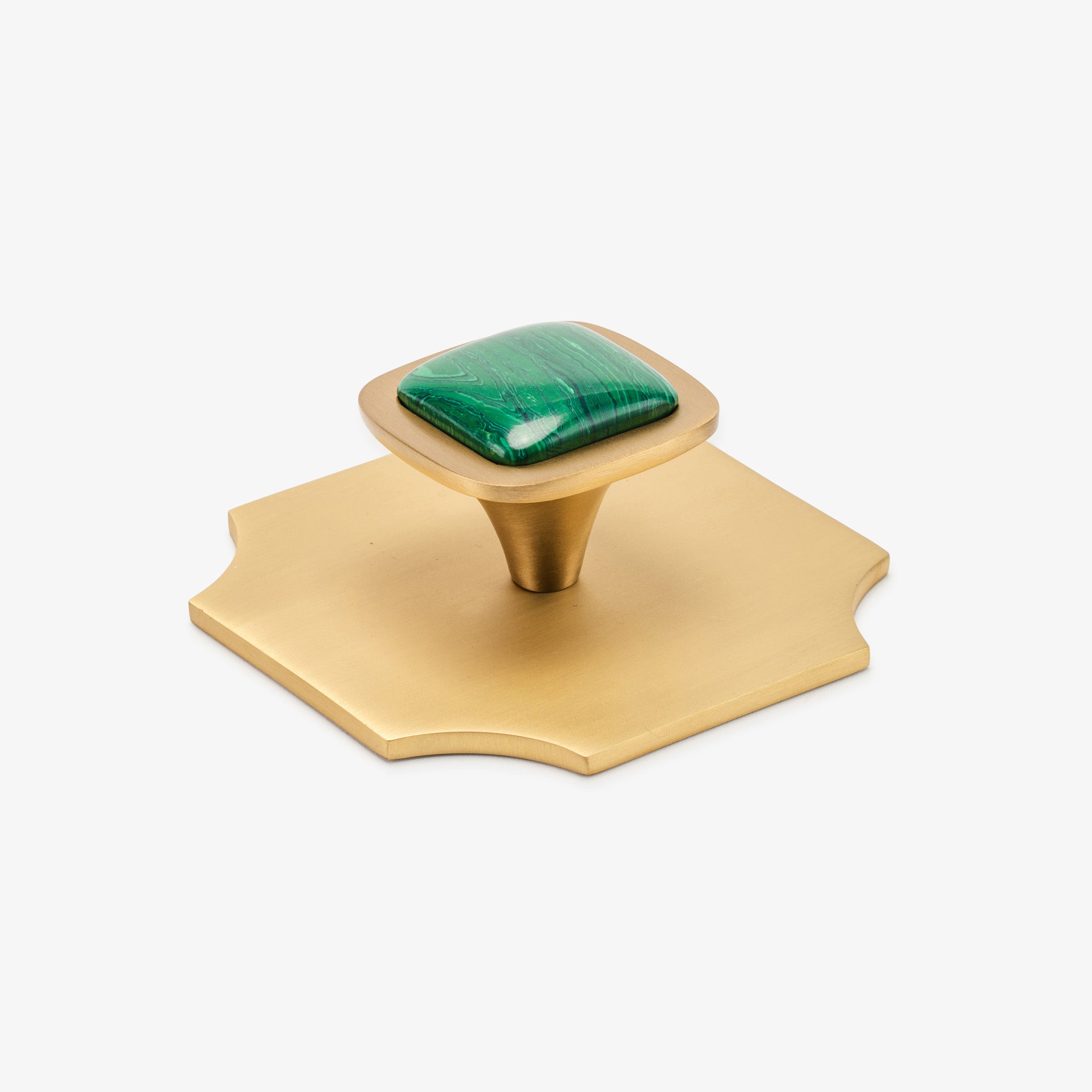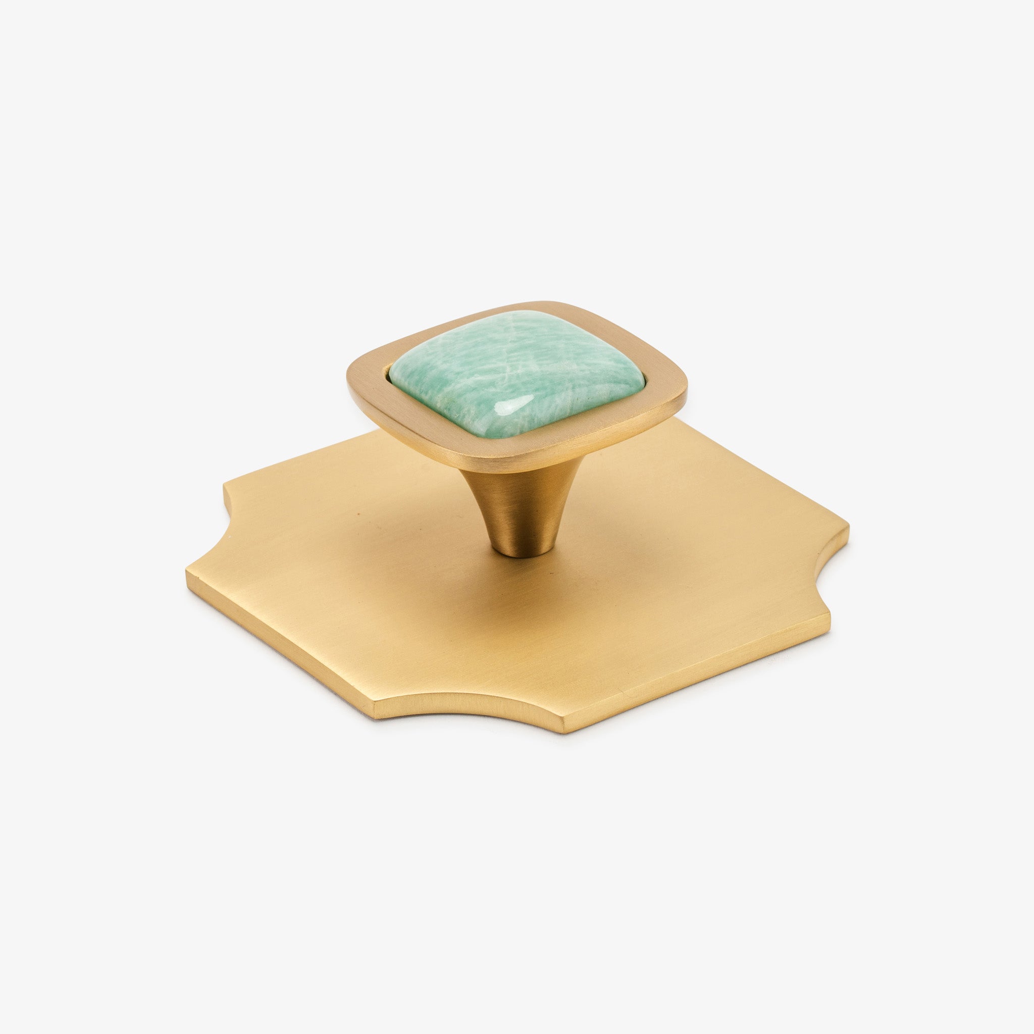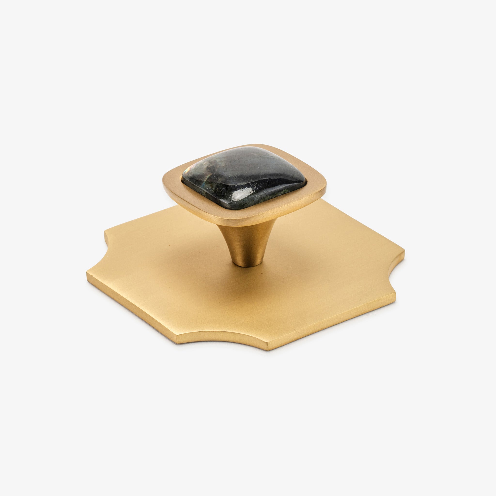 Transform your interiors with this pairing of the Bossard backplate and our beloved Benson knob, showcasing luxurious gemstone options. This Modern Matter essential combines refined craftsmanship with bold design, turning everyday hardware into an architectural statement. Whether updating kitchen cabinetry or bedroom furnishings, this polished brass fixture delivers the contemporary sophistication your home deserves.