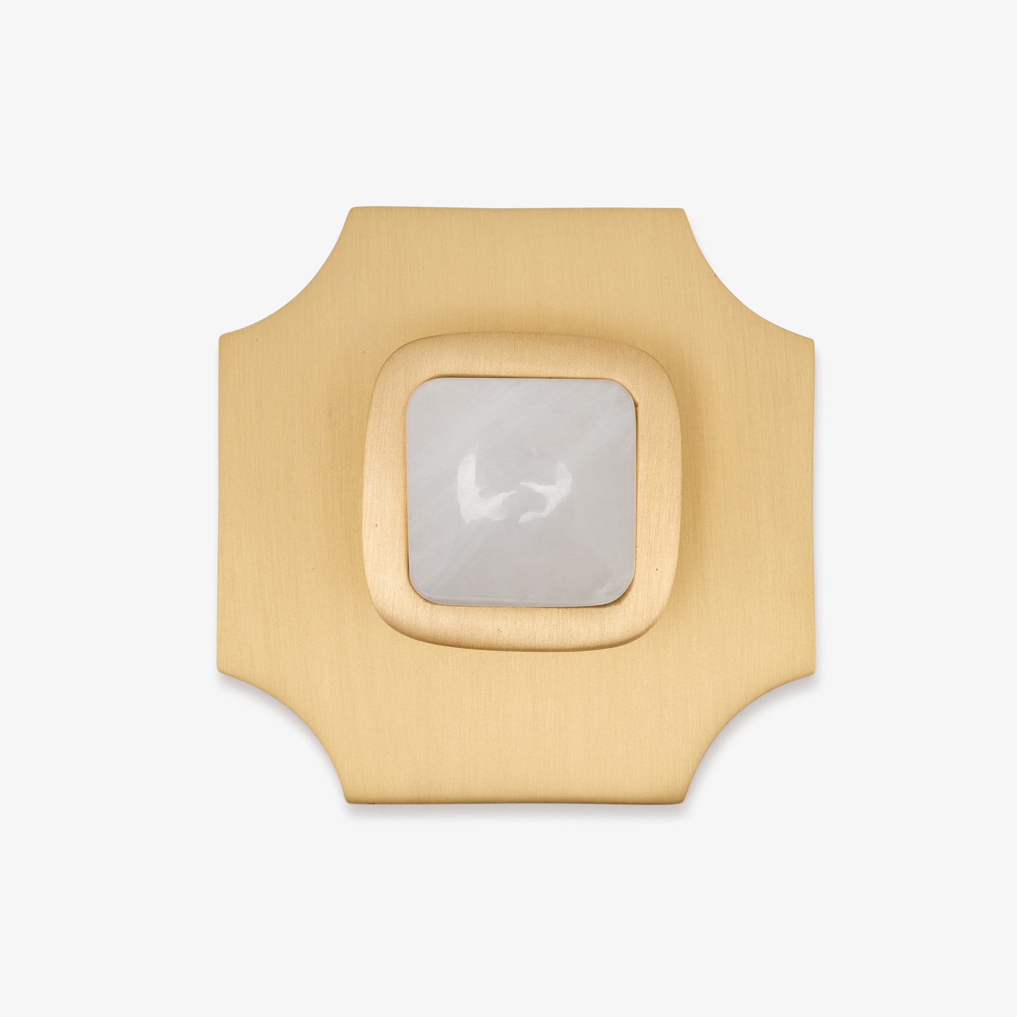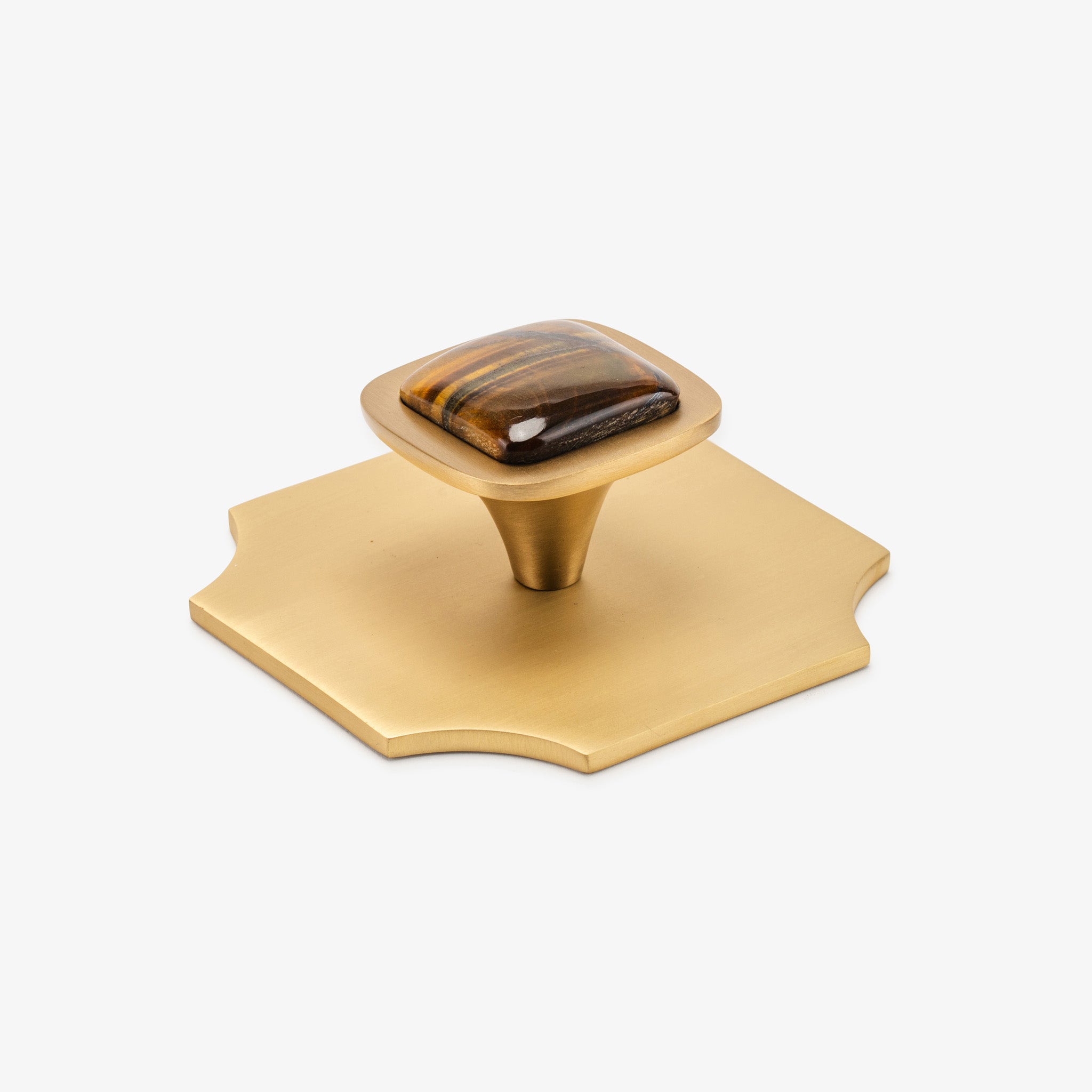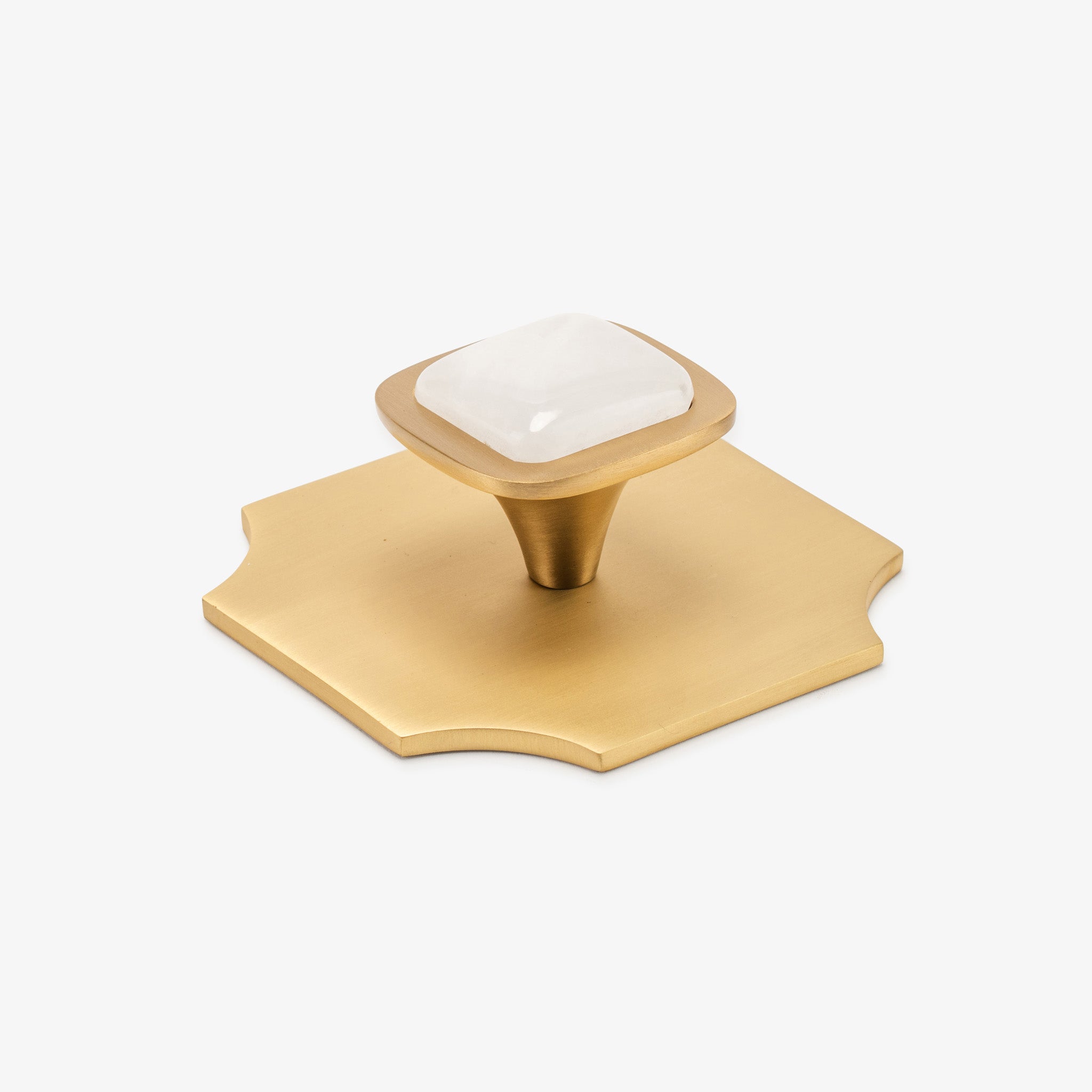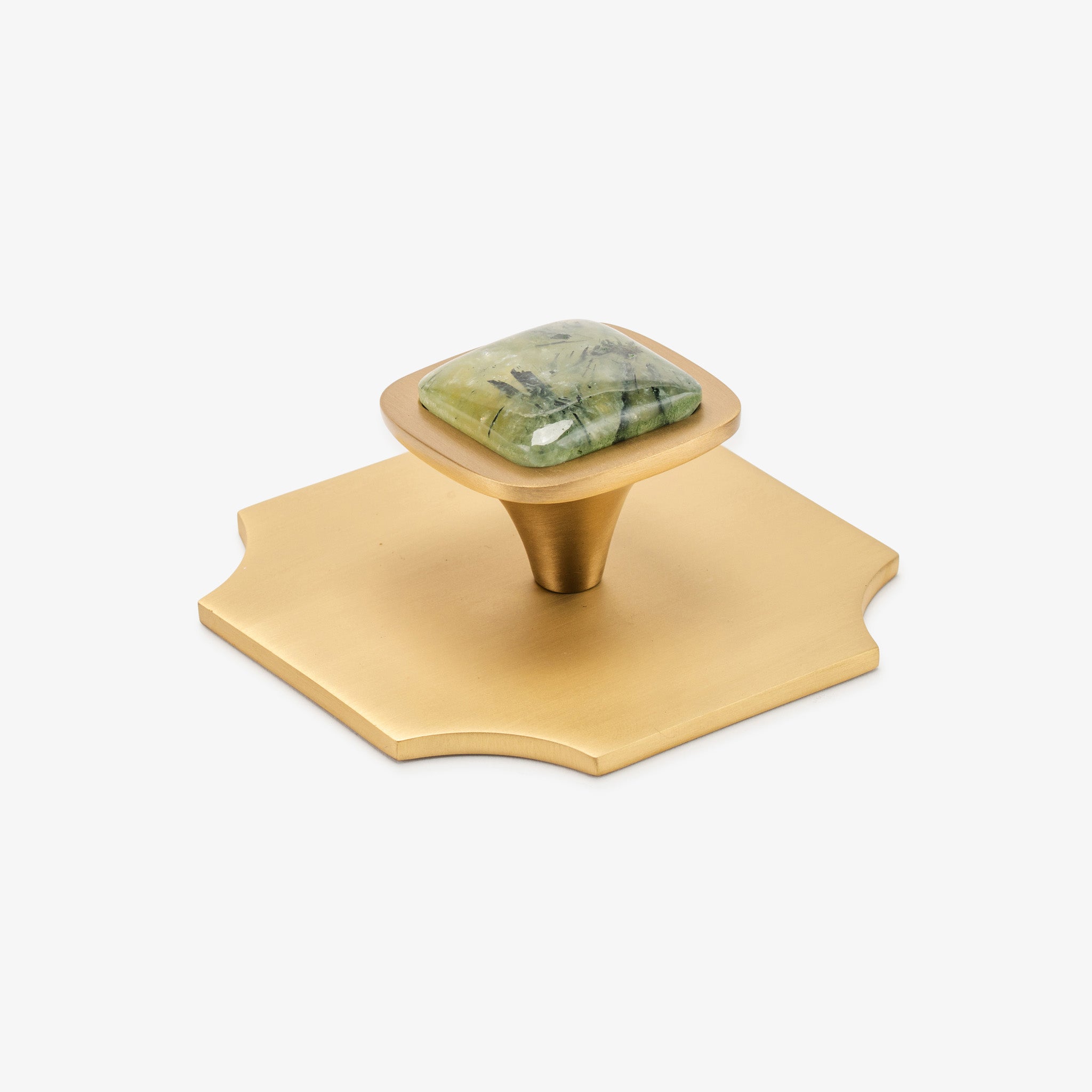 Transform your interiors with this pairing of the Bossard backplate and our beloved Benson knob, showcasing luxurious gemstone options. This Modern Matter essential combines refined craftsmanship with bold design, turning everyday hardware into an architectural statement. Whether updating kitchen cabinetry or bedroom furnishings, this polished brass fixture delivers the contemporary sophistication your home deserves.
