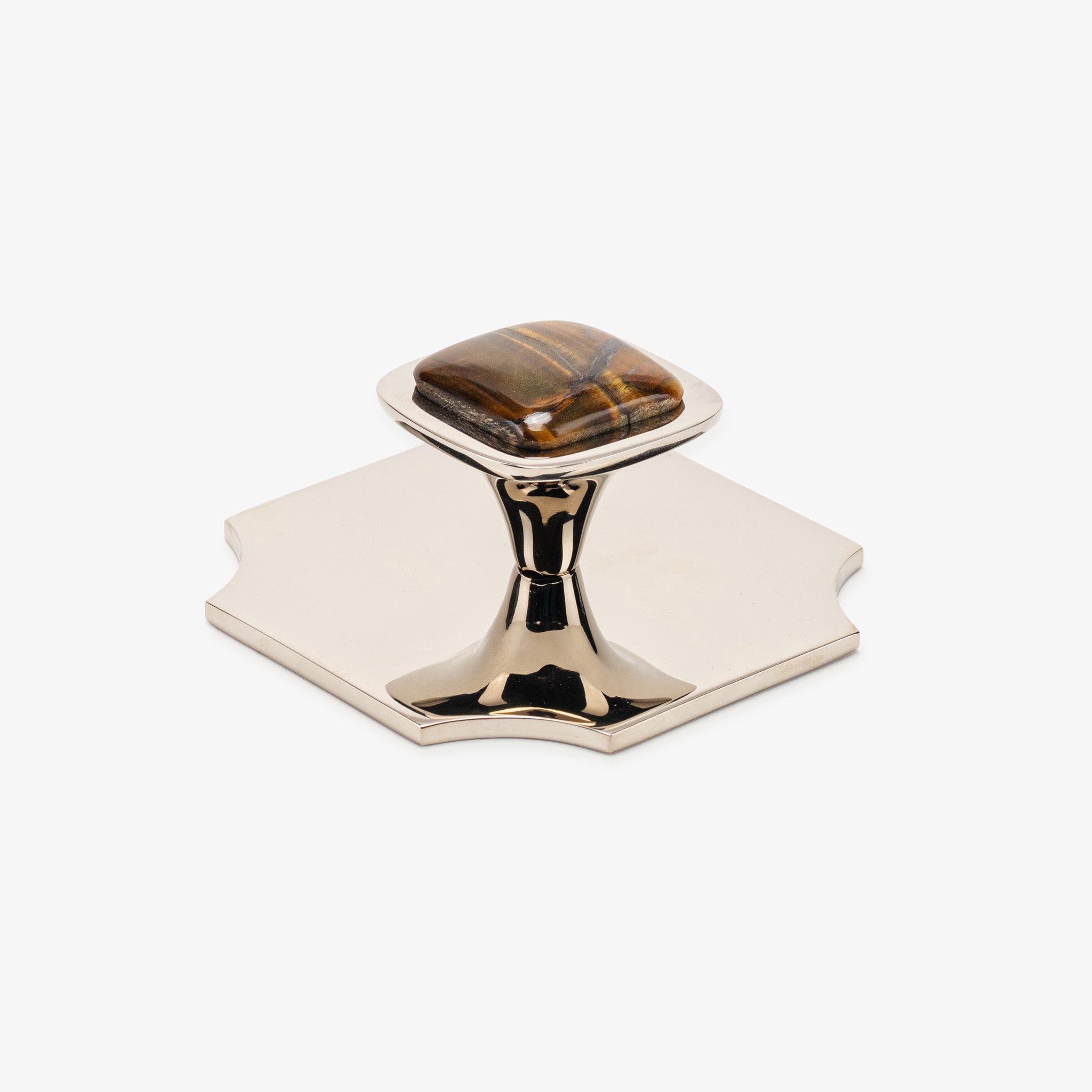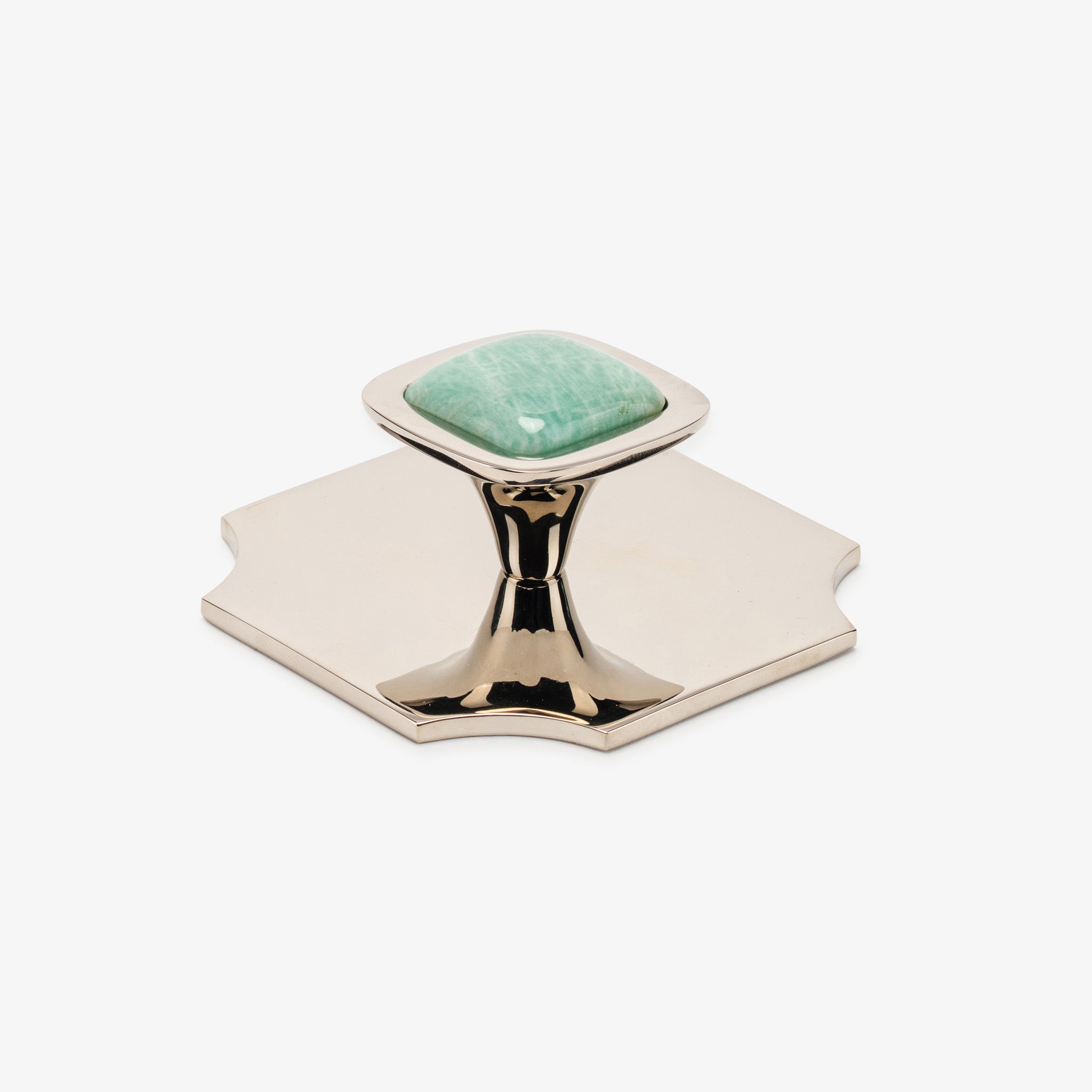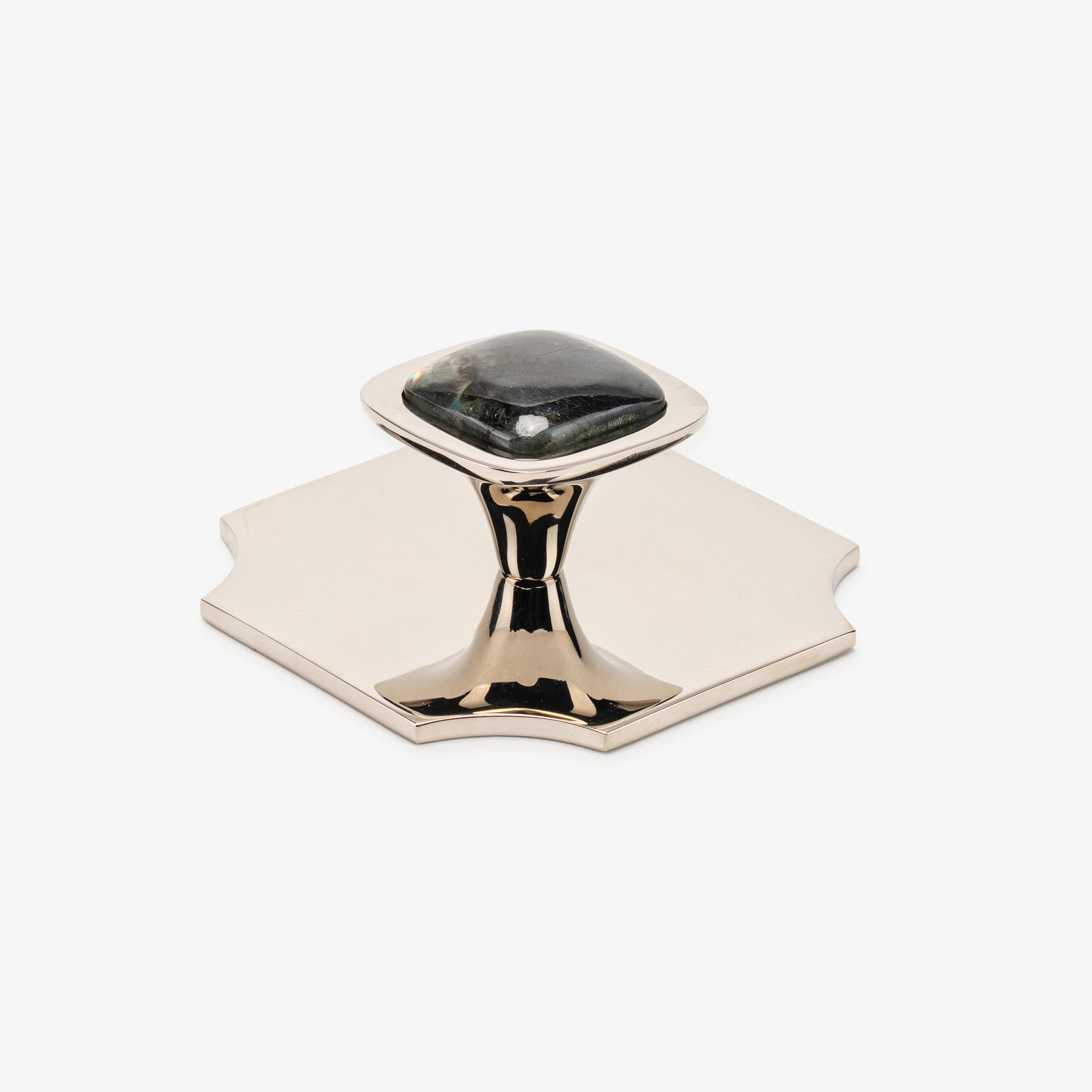 Transform your interiors with this pairing of the Bossard backplate and our beloved Benson knob, showcasing luxurious gemstone options. This Modern Matter essential combines refined craftsmanship with bold design, turning everyday hardware into an architectural statement. Whether updating kitchen cabinetry or bedroom furnishings, this polished brass fixture delivers the contemporary sophistication your home deserves.