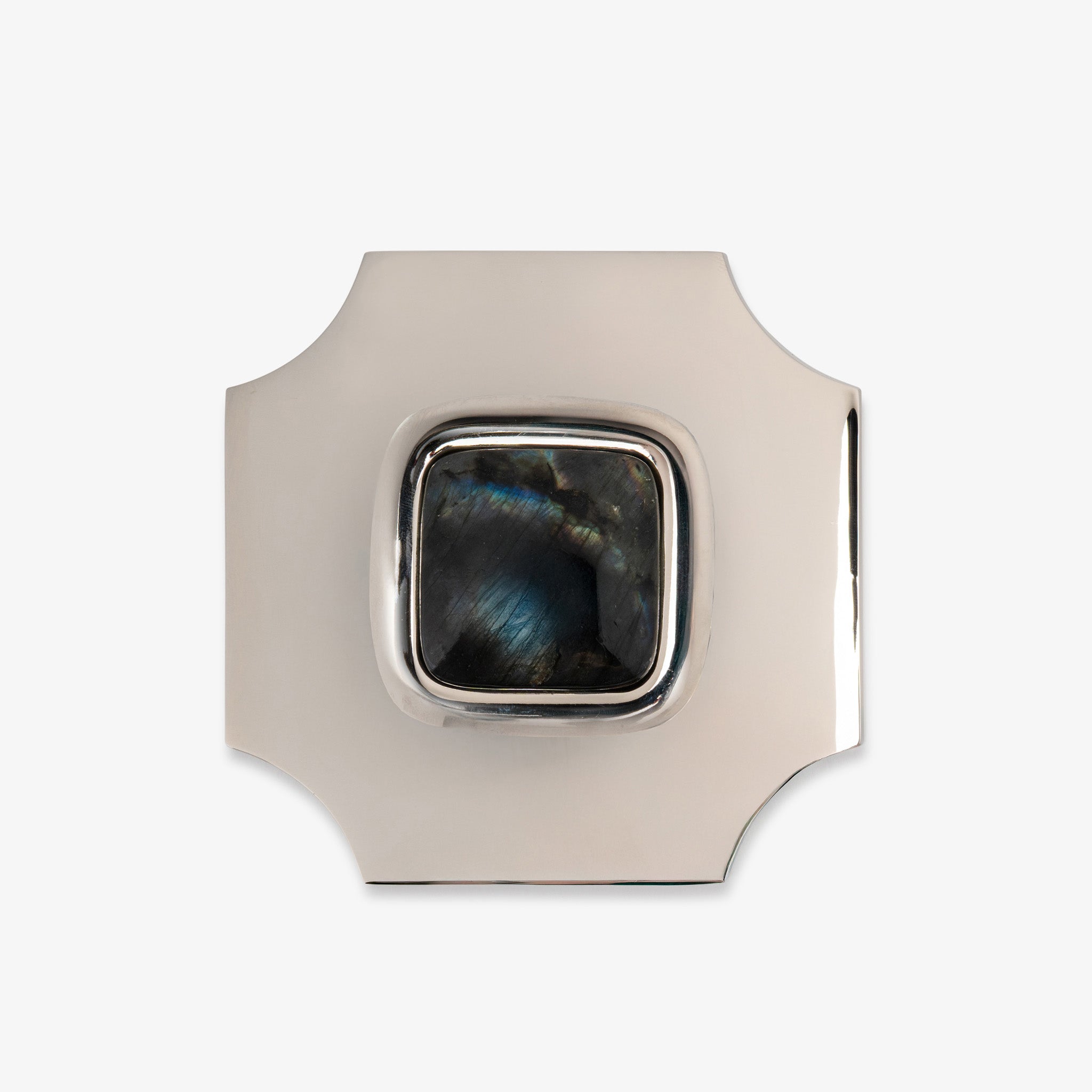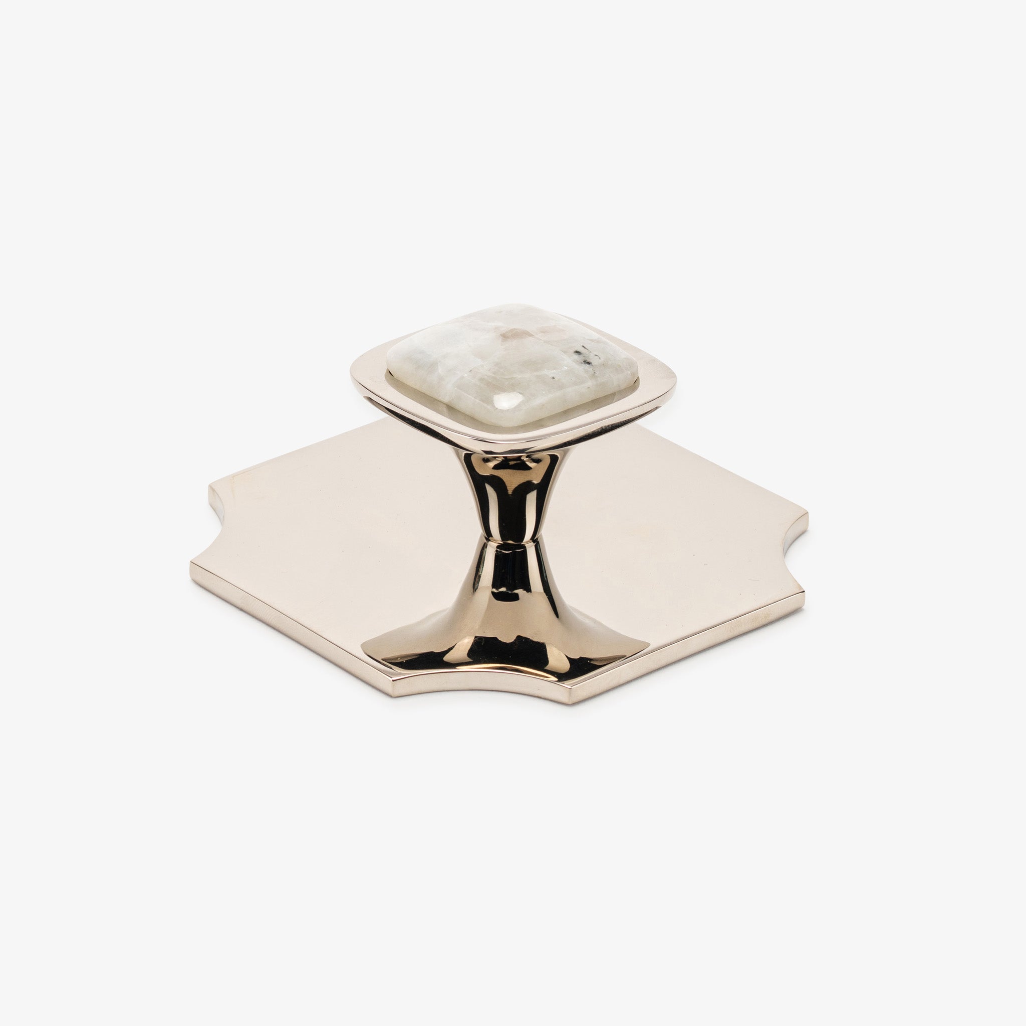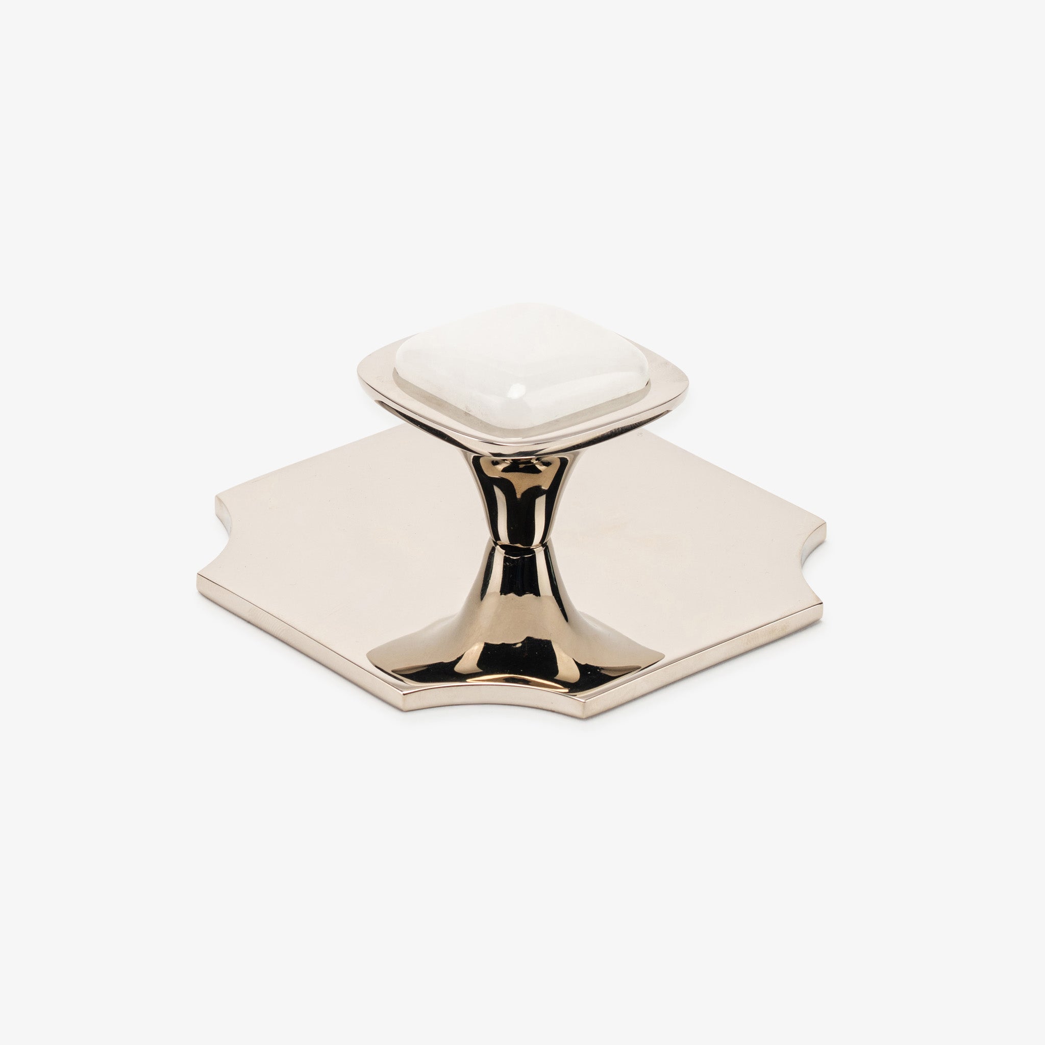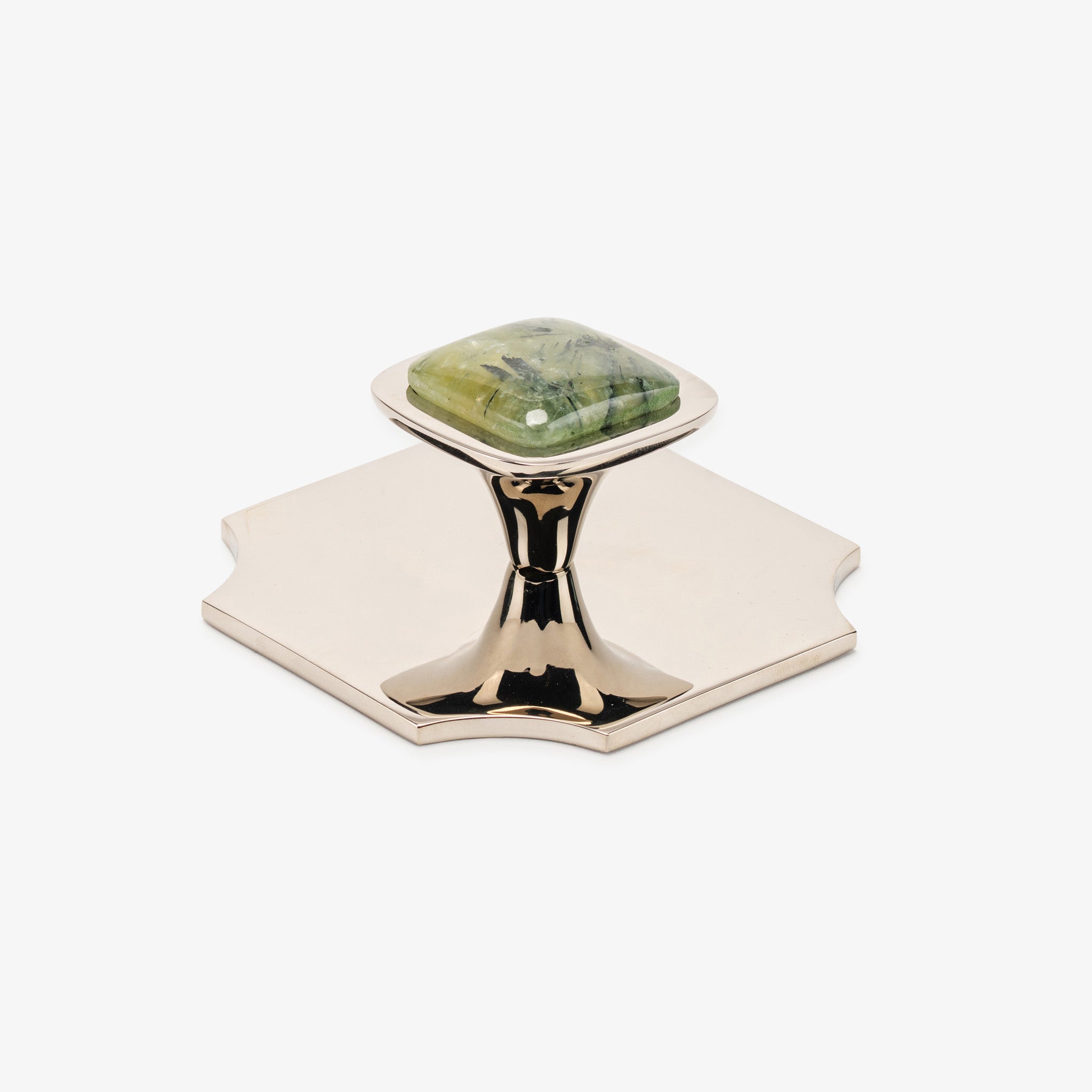 Transform your interiors with this pairing of the Bossard backplate and our beloved Benson knob, showcasing luxurious gemstone options. This Modern Matter essential combines refined craftsmanship with bold design, turning everyday hardware into an architectural statement. Whether updating kitchen cabinetry or bedroom furnishings, this polished brass fixture delivers the contemporary sophistication your home deserves.