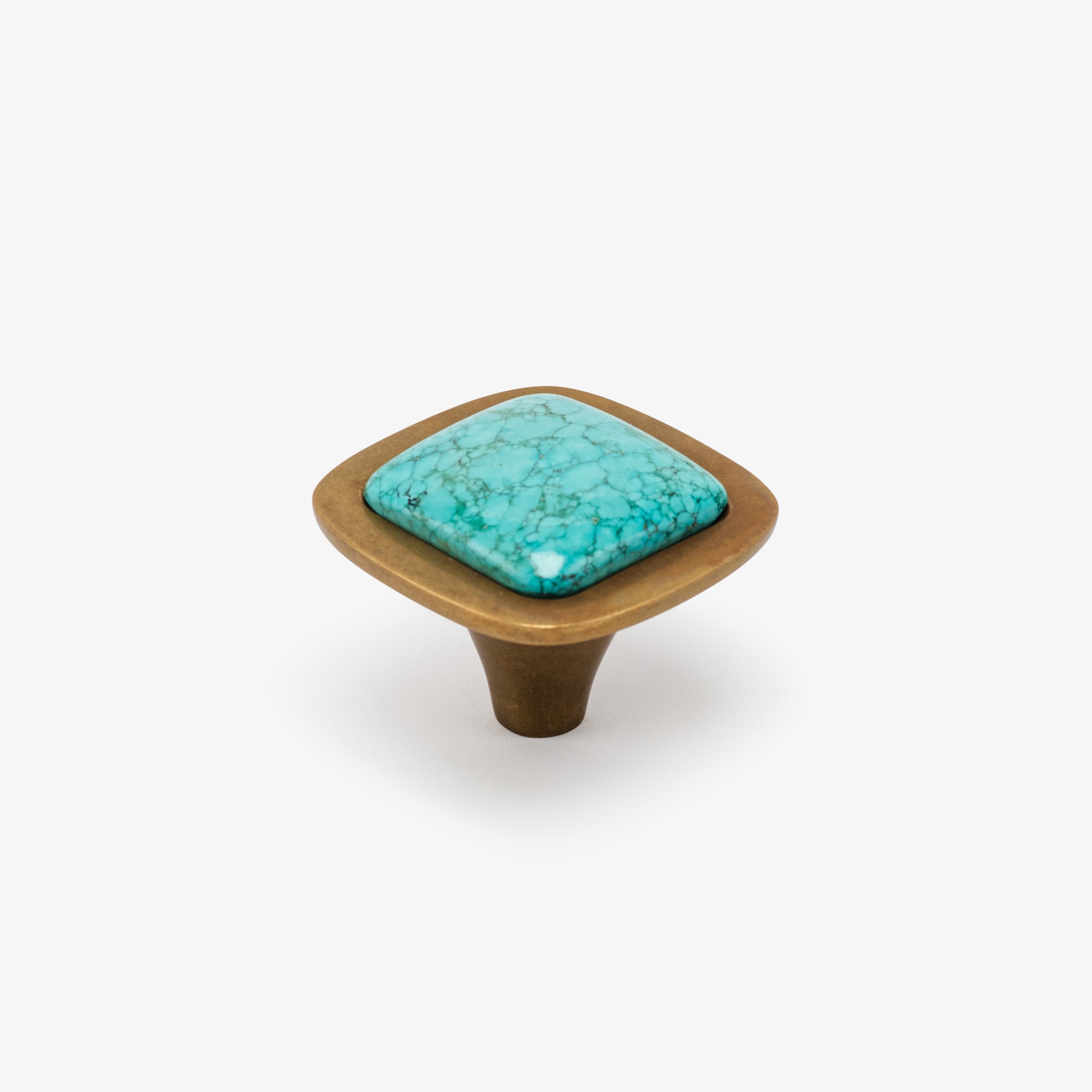 The Benson Custom Knob is one of our most popular designs. Its smooth lines and sleek design are strikingly beautiful in their simplicity. This design can be customized with a square cushioned semi-precious gemstone to compliment the color scheme in your design and furniture. Gemstones used in this design are hand cut and hand polished. This versatile design is often paired with our Benson and Chippendale Backplates to create a sophisticated look, which harmonizes with almost any interior. The Benson Knob has been featured in House Beautiful and Happy Homes Magazine. Your search for modern cabinet hardware ends here.