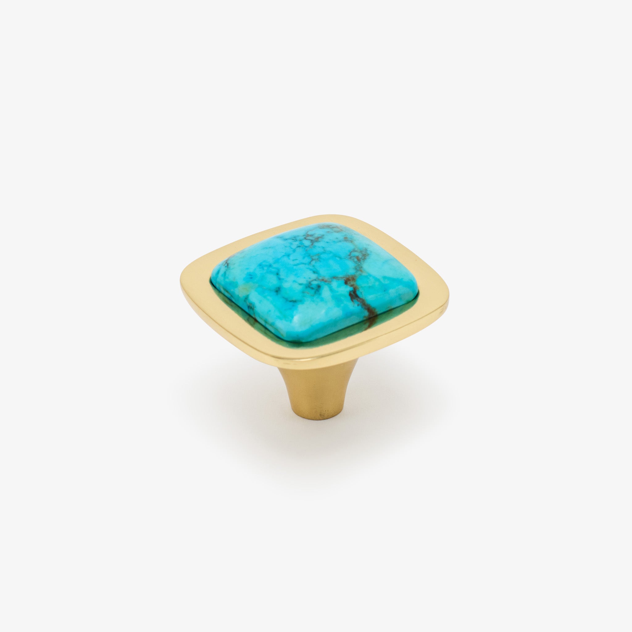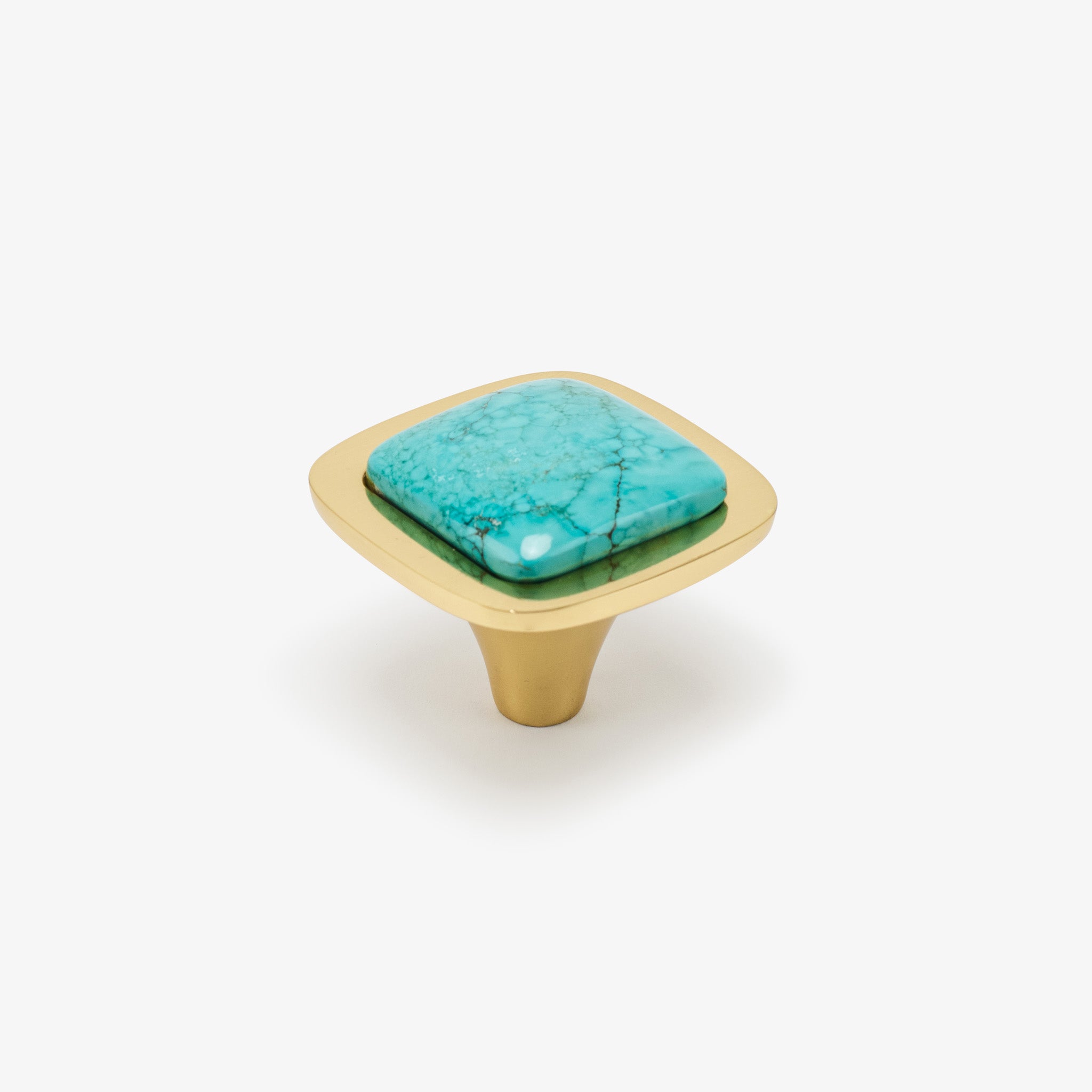 The Benson Custom Knob is one of our most popular designs. Its smooth lines and sleek design are strikingly beautiful in their simplicity. This design can be customized with a square cushioned semi-precious gemstone to compliment the color scheme in your design and furniture. Gemstones used in this design are hand cut and hand polished. This versatile design is often paired with our Benson and Chippendale Backplates to create a sophisticated look, which harmonizes with almost any interior. The Benson Knob has been featured in House Beautiful and Happy Homes Magazine. Your search for modern cabinet hardware ends here.