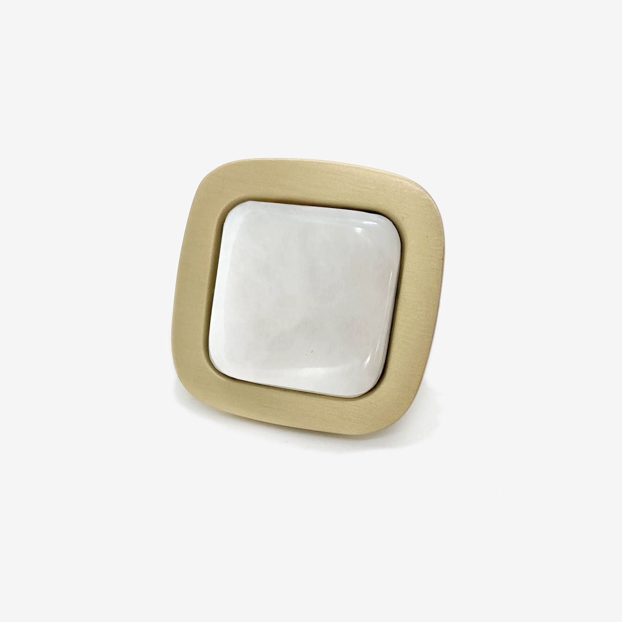 The Benson Custom Knob is one of our most popular designs. Its smooth lines and sleek design are strikingly beautiful in their simplicity. This design can be customized with a square cushioned semi-precious gemstone to compliment the color scheme in your design and furniture. Gemstones used in this design are hand cut and hand polished. This versatile design is often paired with our Benson and Chippendale Backplates to create a sophisticated look, which harmonizes with almost any interior. The Benson Knob has been featured in House Beautiful and Happy Homes Magazine. Your search for modern cabinet hardware ends here.