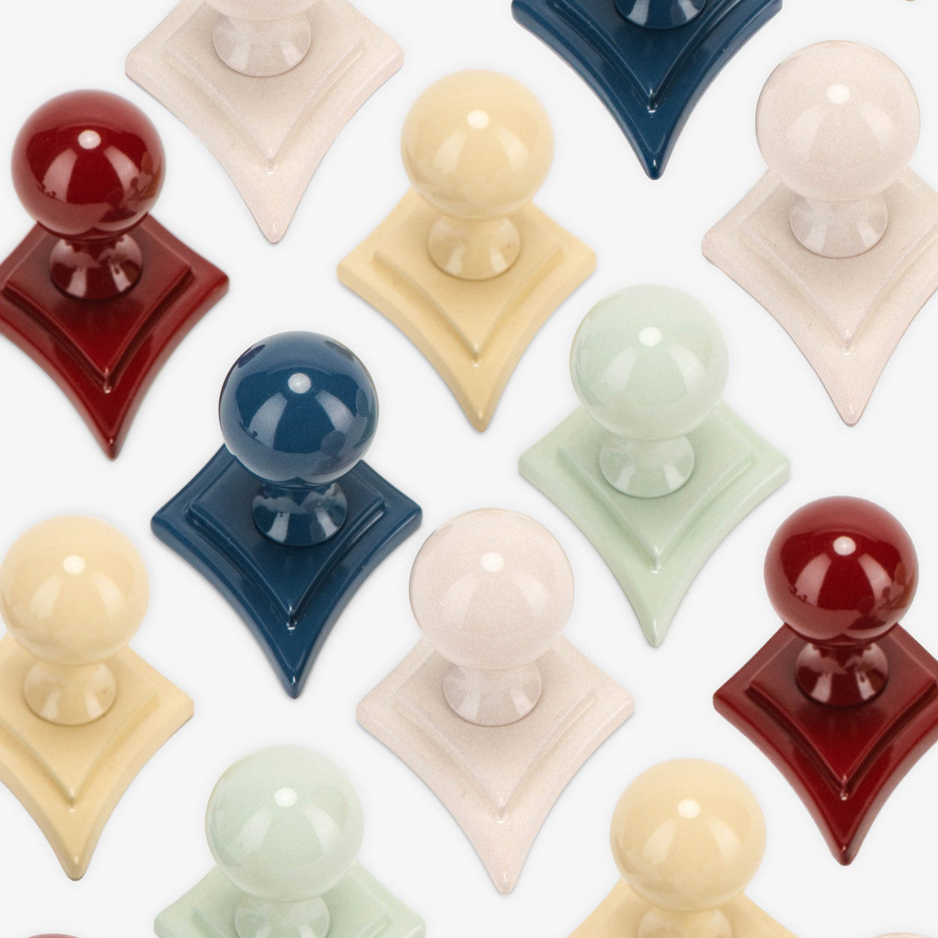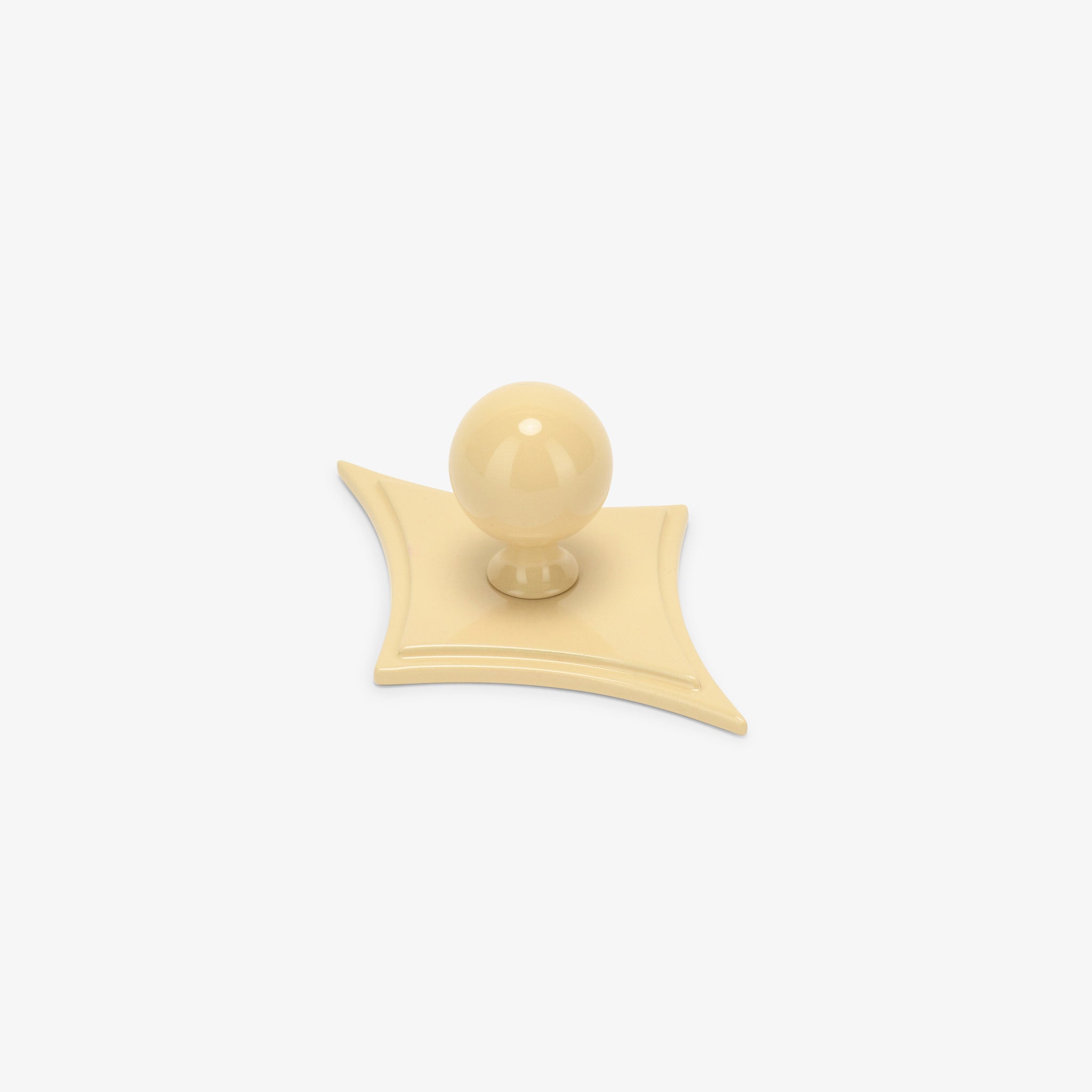 Inspired by iconic Benjamin Moore hues, the Cosmos 1.25" (32mm) Knob + Asteroid 4.75" Backplate is offered in five powder-coated finishes, each thoughtfully lacquered to complement Newburyport Blue, Mint Chocolate Chip, Head Over Heels, Waterbury Cream, and Dinner Party. Each shade delivers a refined pop of color, elevating cabinetry with understated sophistication. Together, the sculptural globe knob and curved diamond backplate create a striking, architectural composition. Crafted from solid brass and finished with Modern Matter’s durable powder coating, this pairing offers lasting performance, long-term color integrity, and a refined statement for kitchen cabinetry, bathroom vanities, and furniture pieces alike.