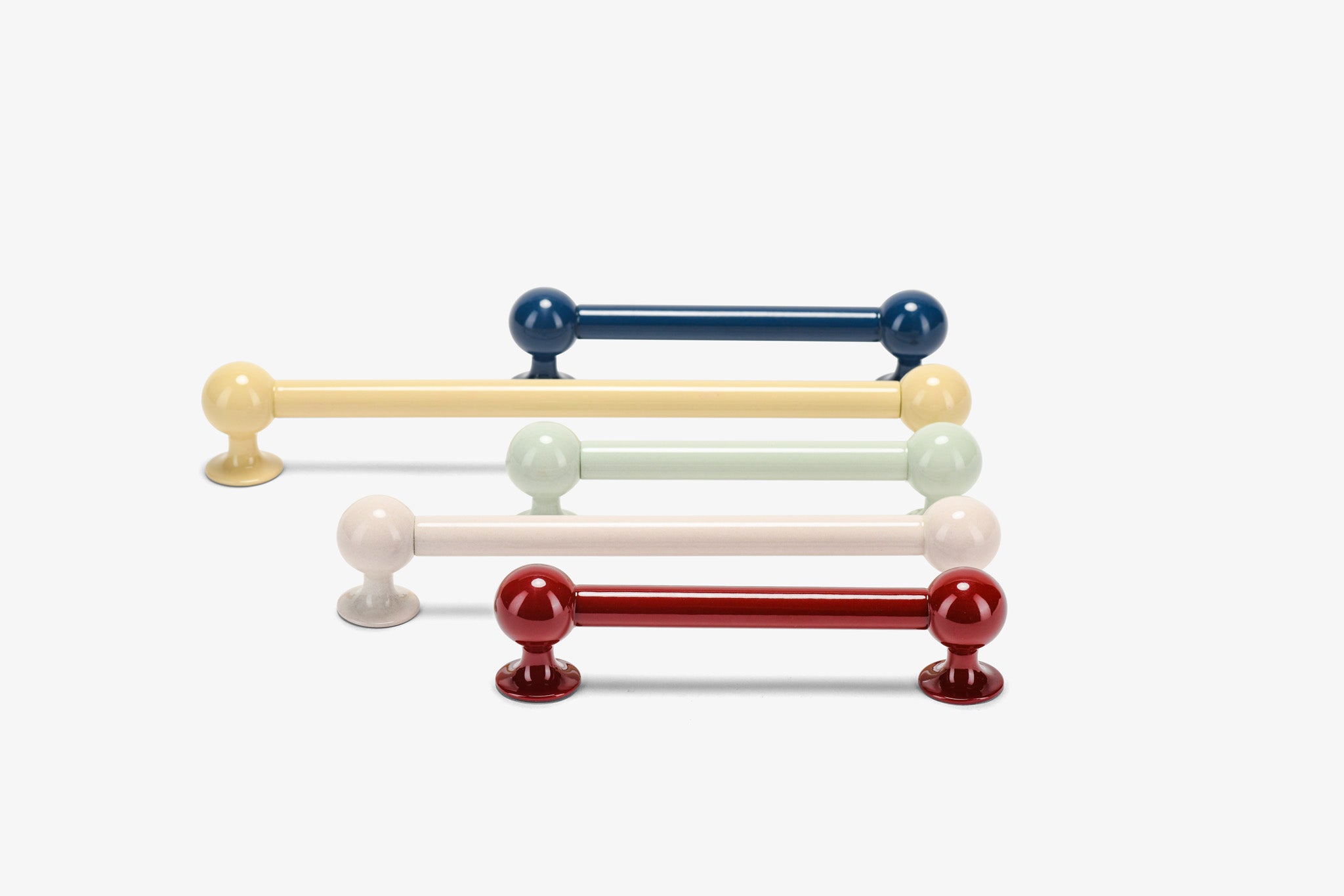 Inspired by iconic Benjamin Moore hues, the Cosmos 9.84" (250mm) Bar Pull is offered in five powder-coated finishes, each thoughtfully lacquered to complement Newburyport Blue, Mint Chocolate Chip, Head Over Heels, Waterbury Cream, and Dinner Party. Each shade delivers a refined pop of color, elevating cabinetry with understated sophistication, while the pull’s signature orb ends create a sculptural statement with a refined, modern edge. Crafted from solid brass and finished with Modern Matter’s durable powder coating, it offers superior resistance to wear and long-term color integrity, bringing a refined, statement-making finish to cabinetry.