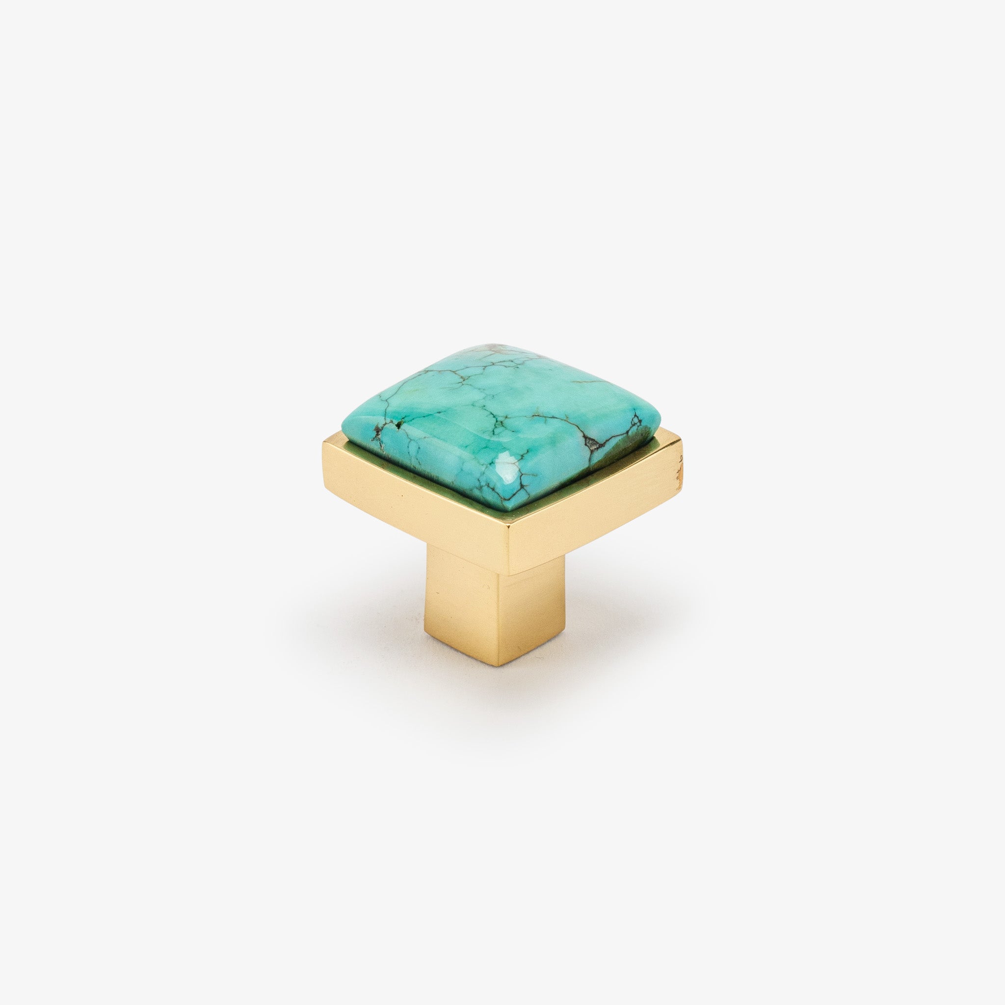 The Horne Knob is a classic square shaped knob. While the square is a balanced and strong shape, it is complemented by a cushioned gemstone which provides softness. This design can be customized using semi-precious gemstones and is versatile to be used in any design theme. Available in two sizes, the Horne Knob is mostly paired with the Lane Knob and added to backplates to provide an additional layer of luxury.