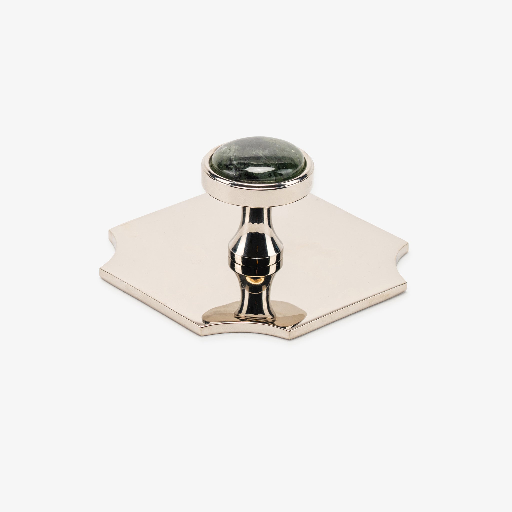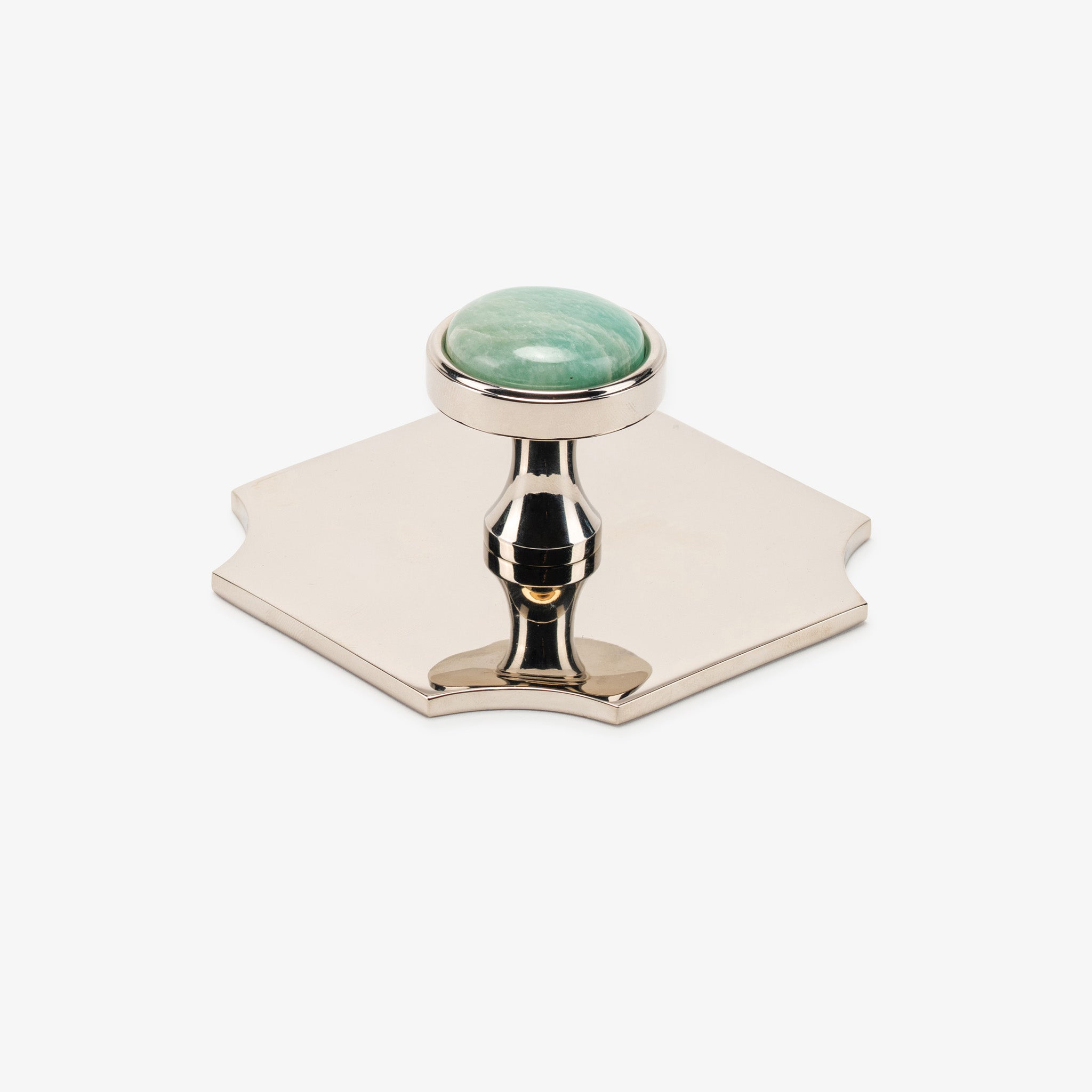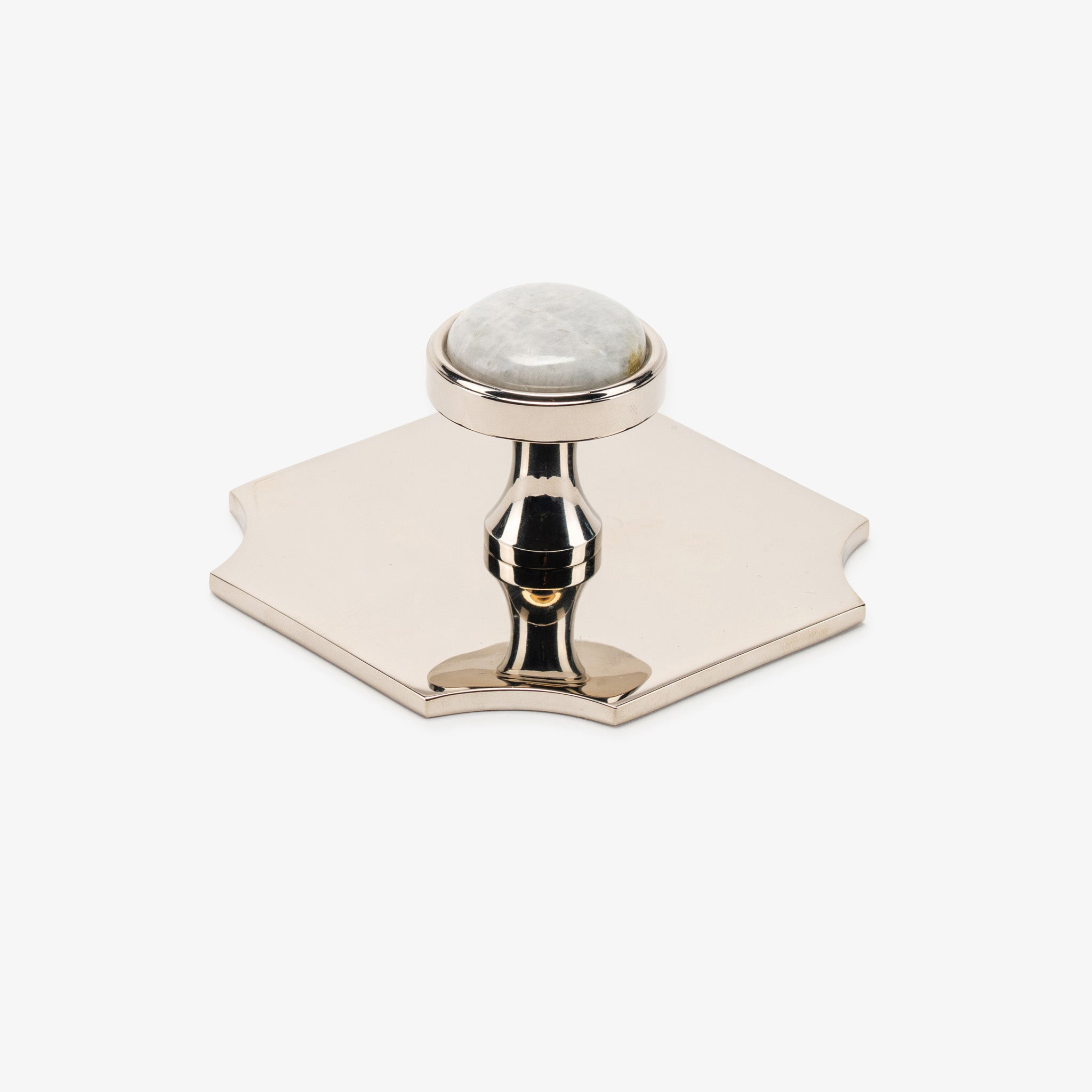 Transform your interiors with this pairing of the Bossard backplate and our beloved Lane knob, showcasing luxurious gemstone options. This Modern Matter essential combines refined craftsmanship with bold design, turning everyday hardware into an architectural statement. Whether updating kitchen cabinetry or bedroom furnishings, this polished brass fixture delivers the contemporary sophistication your home deserves.