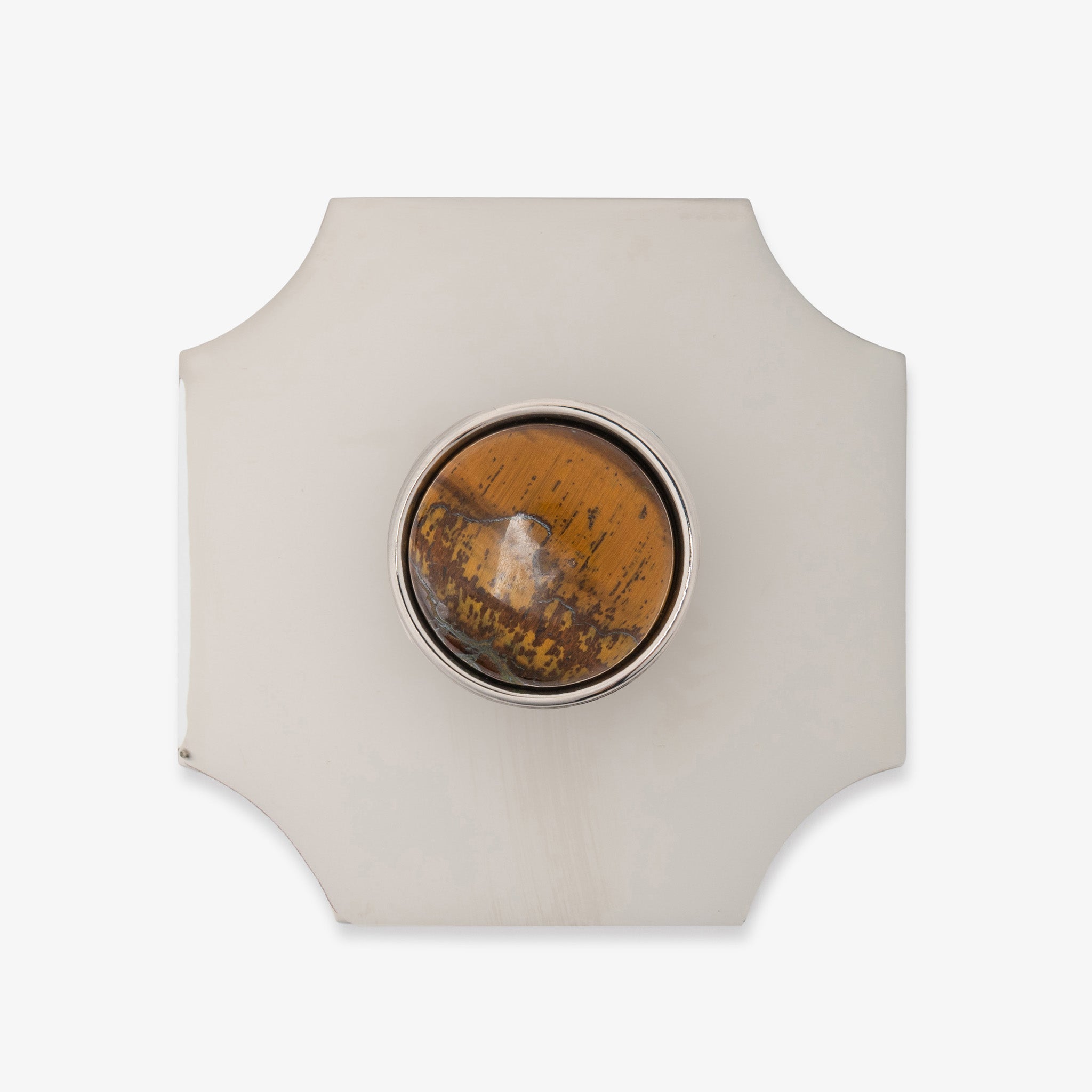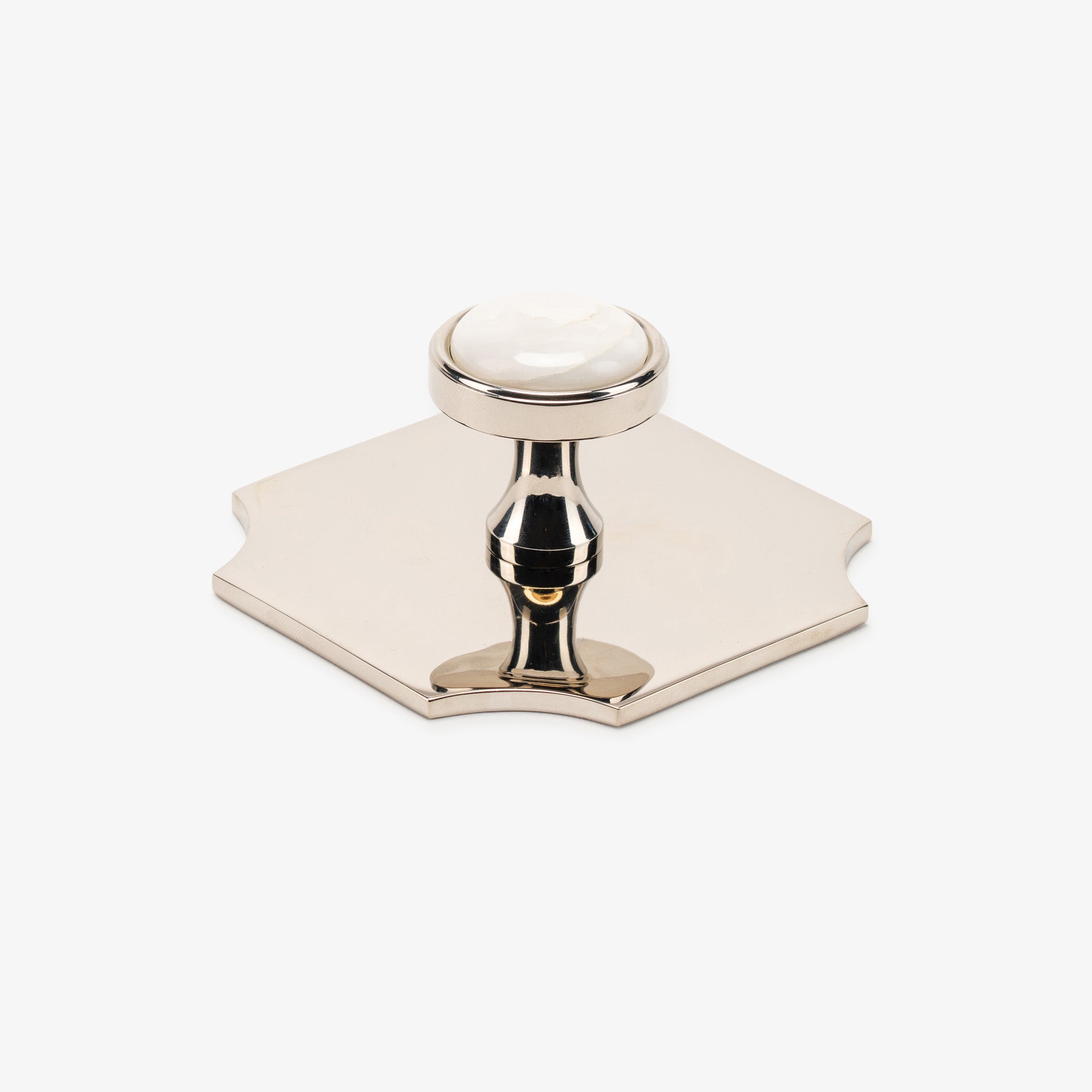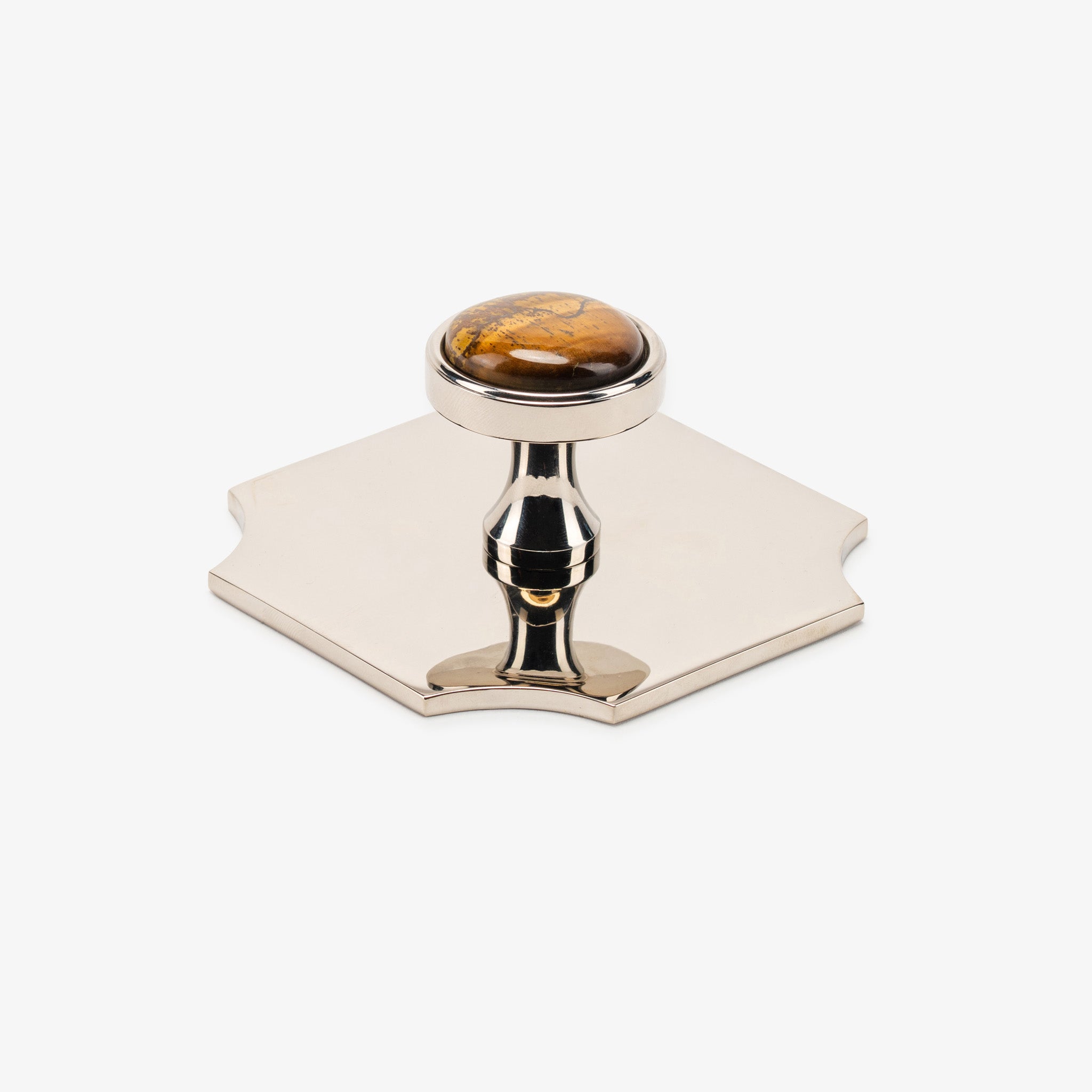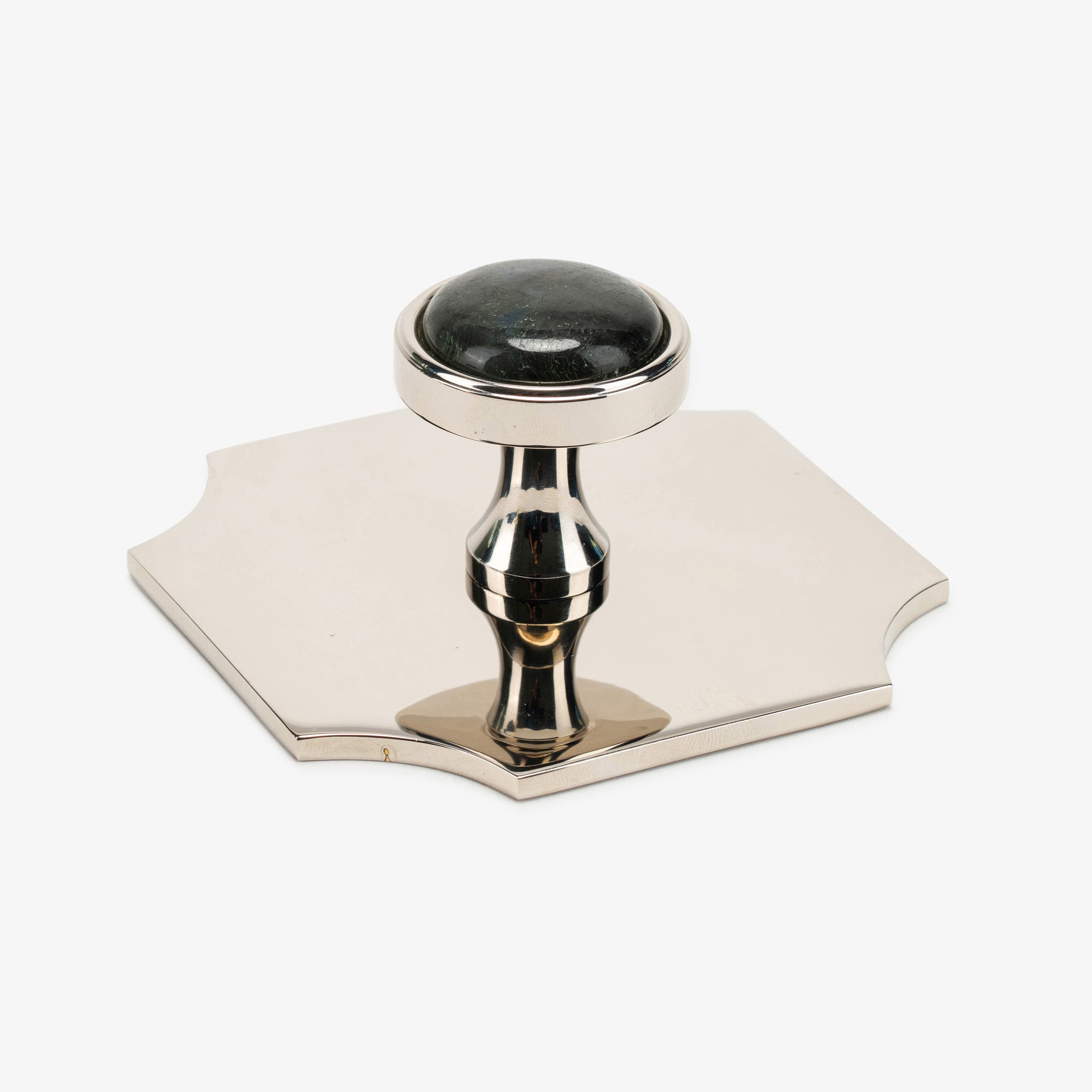 Transform your interiors with this pairing of the Bossard backplate and our beloved Lane knob, showcasing luxurious gemstone options. This Modern Matter essential combines refined craftsmanship with bold design, turning everyday hardware into an architectural statement. Whether updating kitchen cabinetry or bedroom furnishings, this polished brass fixture delivers the contemporary sophistication your home deserves.