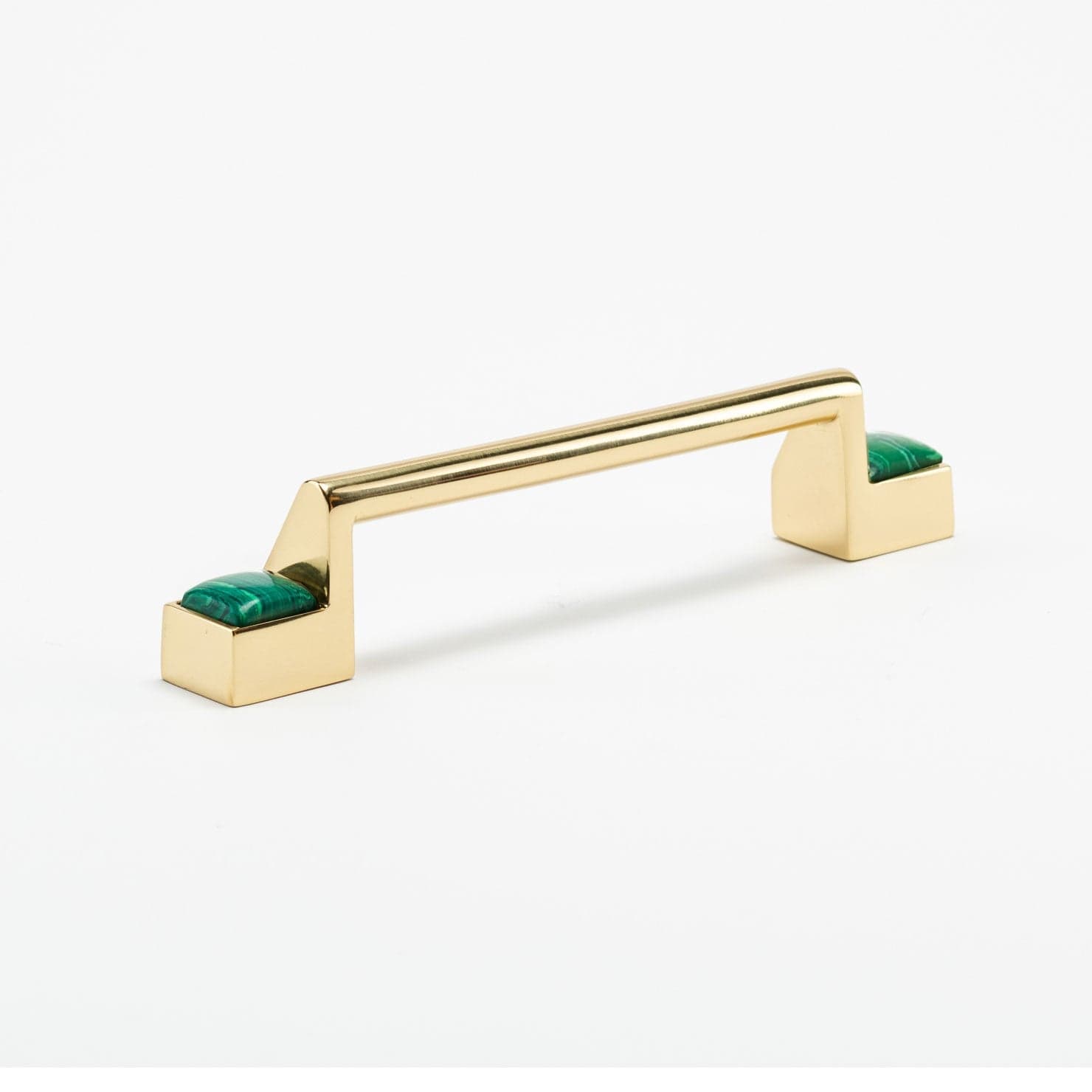 The Porter solid brass cabinet pull features square gemstones in a timeless design, creating a sleek and sophisticated look. Pair with the Porter gemstone ring pull to compliment the look.