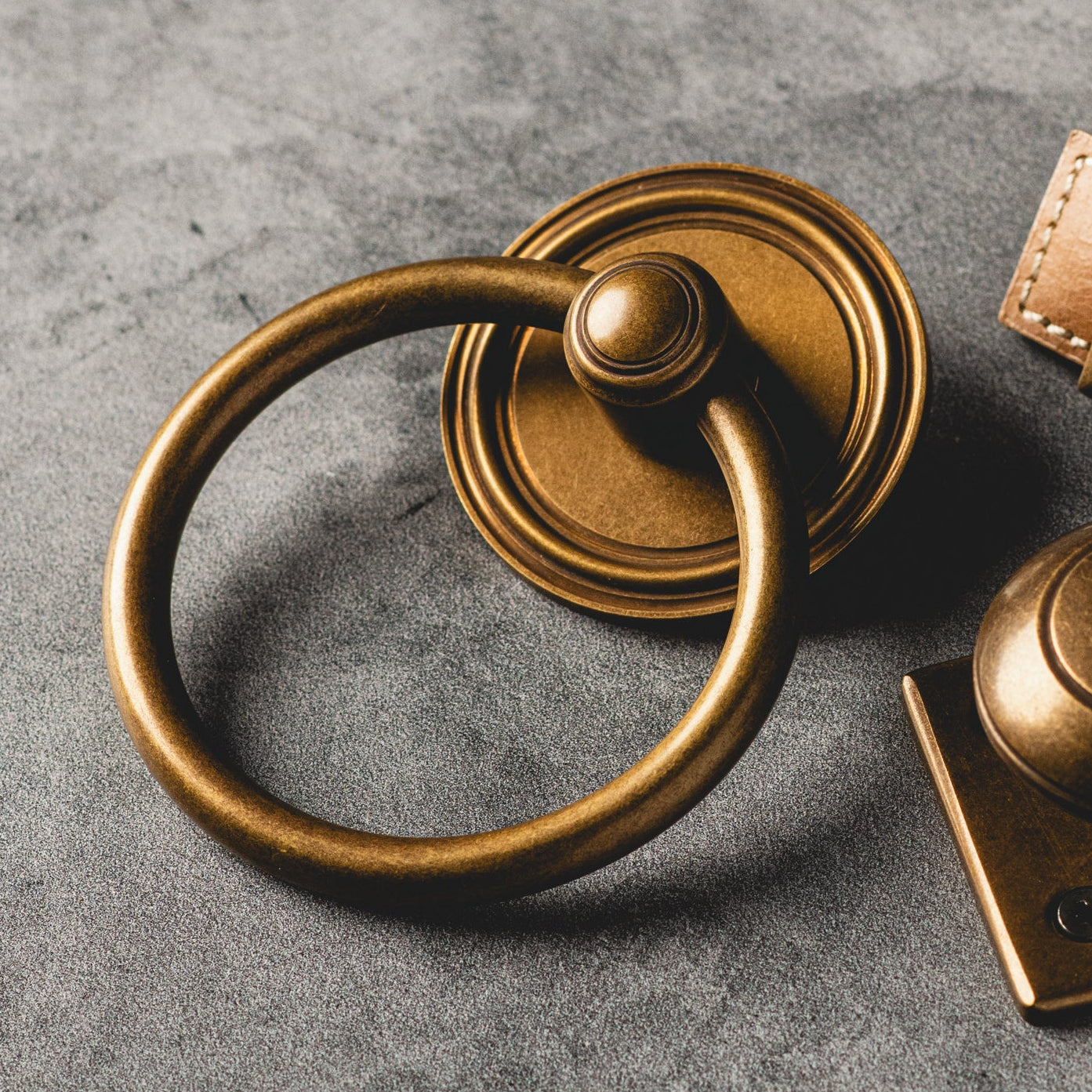 Elevate your interior spaces with the Roanoke Ring Pull paired with the Crew Backplate, a timeless combination that showcases refined craftsmanship with versatile design. From our Smith River Collection, this combination delivers both subtle impact and functional elegance to kitchen cabinetry, bathroom vanities, and furniture pieces alike. The solid brass construction paired with the classic knob ensures modern sensibility, while the hand-applied finish catches light beautifully, adding warmth and sophistication to any room. Whether you're undertaking a complete kitchen renovation or refreshing individual furniture pieces, this combination adapts seamlessly to modern, transitional, and classic interiors. The decorative backplate provides a unique presence that transforms ordinary spaces into design statements. Available in multiple finishes, you can select the perfect tone to harmonize with your existing décor and hardware palette. Invest in hardware that marries form and function—this combination is the finishing touch your space deserves.